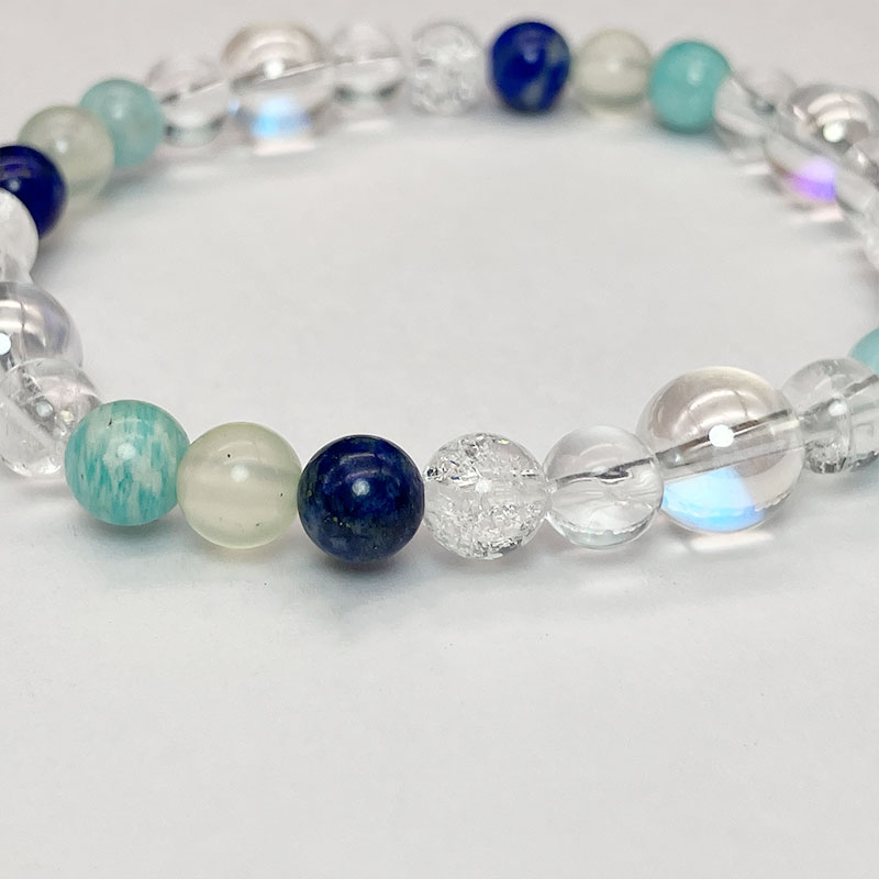 ・水晶 6mm×8 ・ペルーアマゾナイト 6mm×4 ・ネフライト 6mm×4 ・ラピスラズリー 6mm×4 ・クラック水晶 6mm×4 |