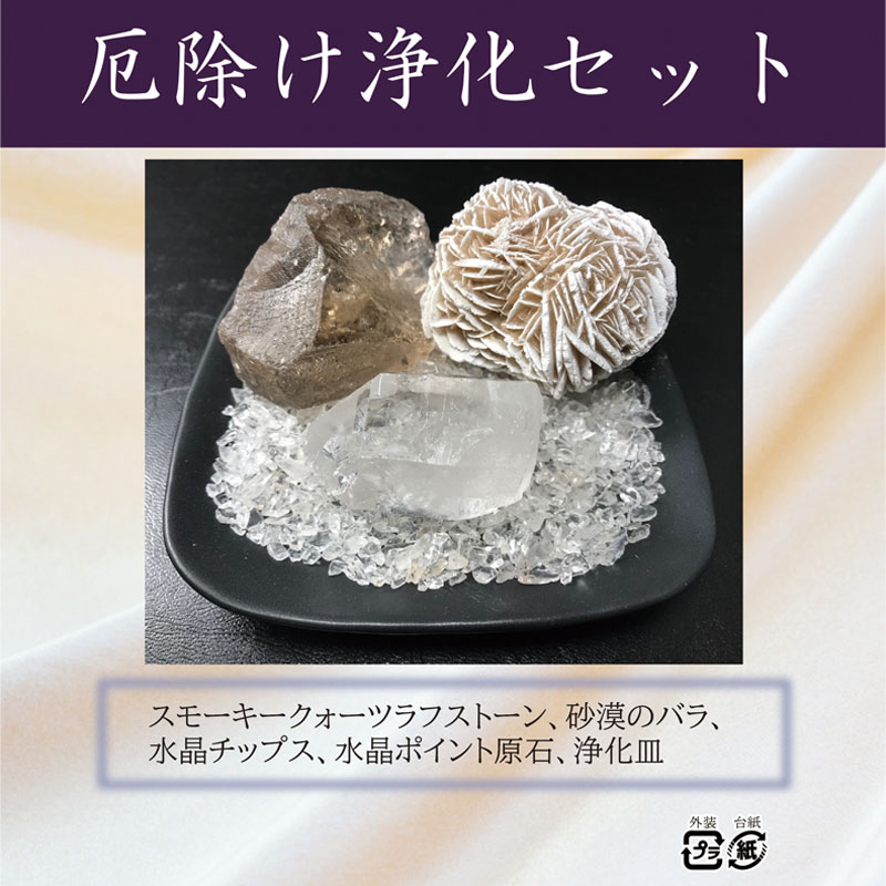 ・ラフストーン スモーキークォーツ ・砂漠のバラ ・水晶ポイント原石 ・水晶チップス ・黒皿 |