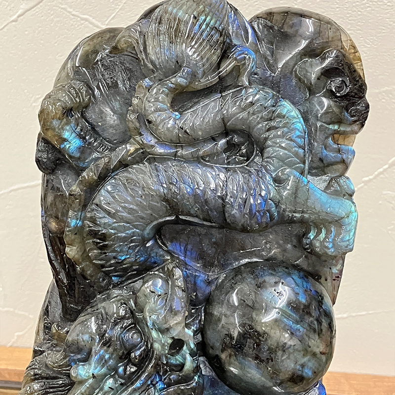 【置物/彫り物】ラブラドライト龍置物 No,2524