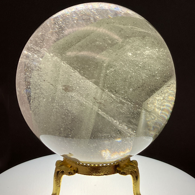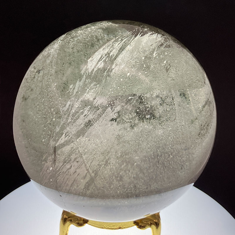 緑色の苔や茶色の土を思わせる鉱物が水晶内部に混入し、まるで庭園を思わせる外観を呈しています。