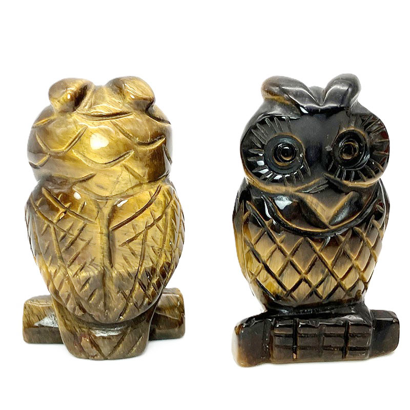 【置物/彫り物】タイガーアイ フクロウ No,3543