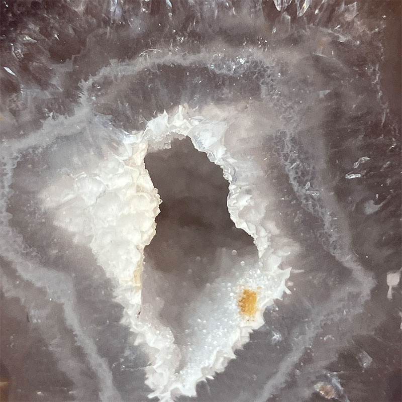 これはメノウ原石の内側に空洞があり、そこに地下水などが流れ込み