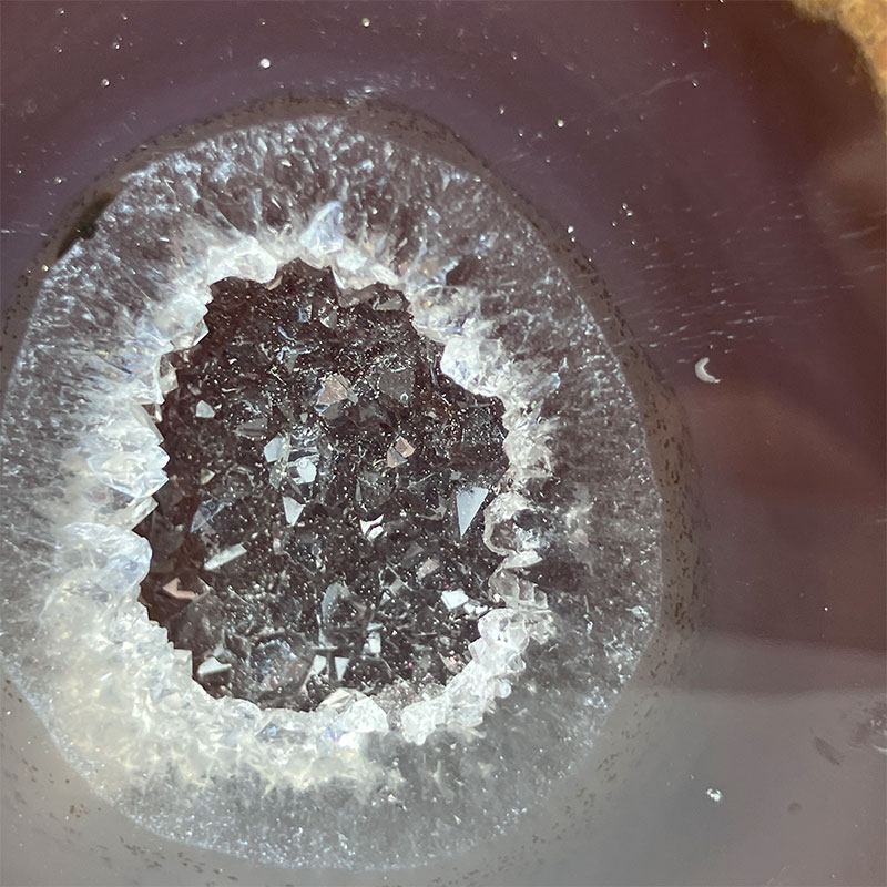 これはメノウ原石の内側に空洞があり、そこに地下水などが流れ込み
