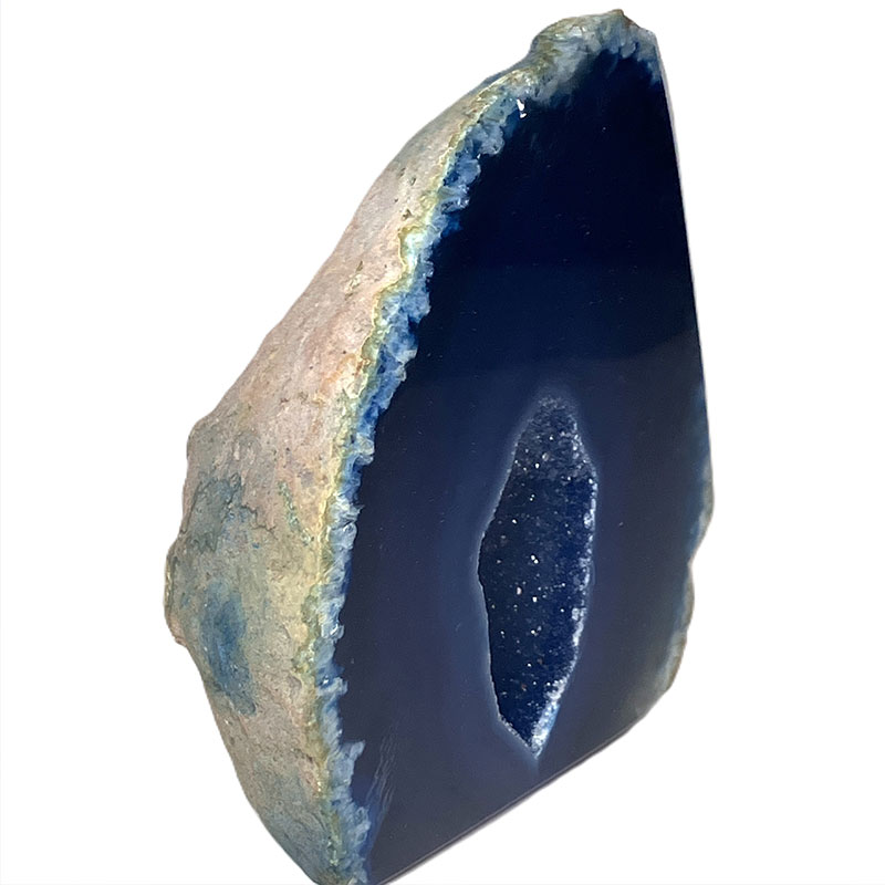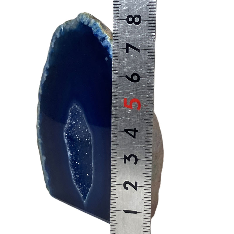 【置物/彫り物】メノウ原石水晶付き(ブルー)約200g No,3635