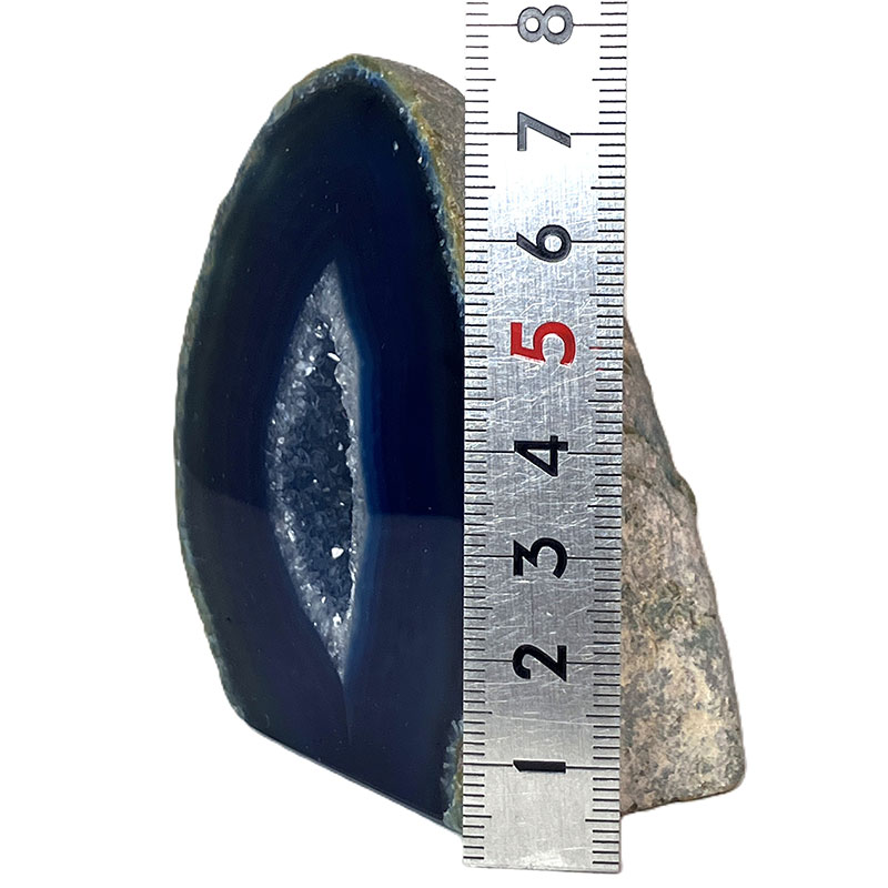 【置物/彫り物】メノウ原石水晶付き(ブルー)約300g No,3637