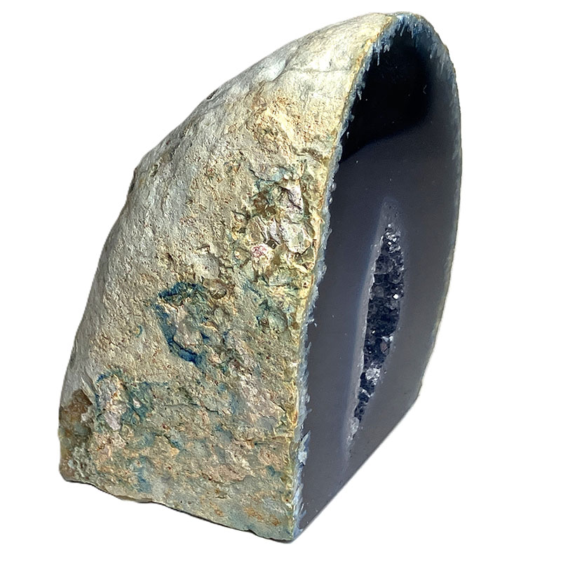 【置物/彫り物】メノウ原石水晶付き(ブルー)約300g No,3639