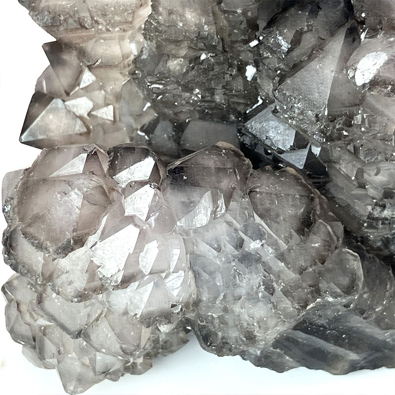 黒水晶は不透明と言えるほどこげ茶から黒に色づいた水晶で、色の濃い煙水晶との区別は、結晶構造が破壊されたもの、表面に透明感のないものなどと言われることもありますが、黒水晶と色が濃くなった煙水晶を区別する明確な定義は存在しません。