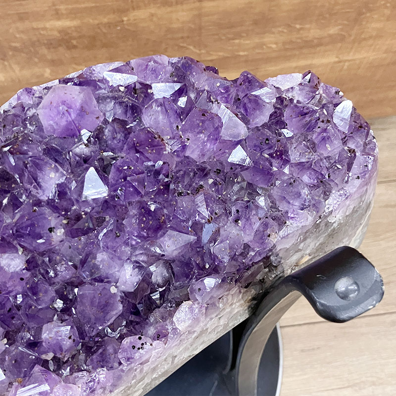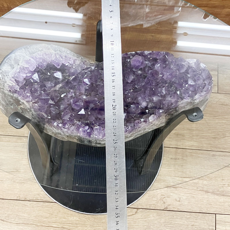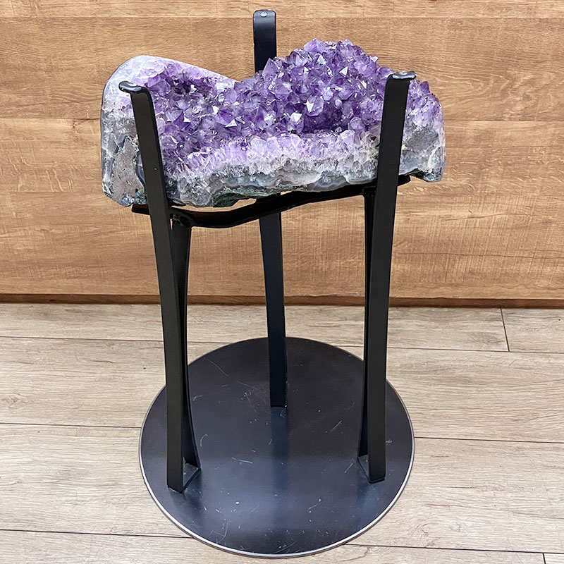内部のアメジストクラスターに合わせて、鉄の台を作成しテーブルに見立てています。