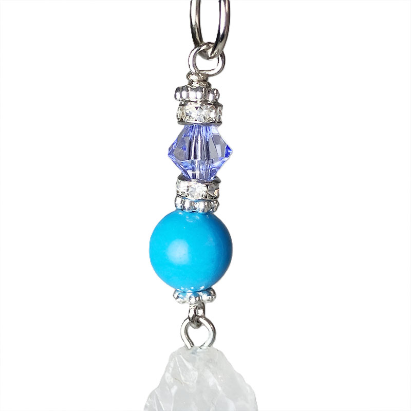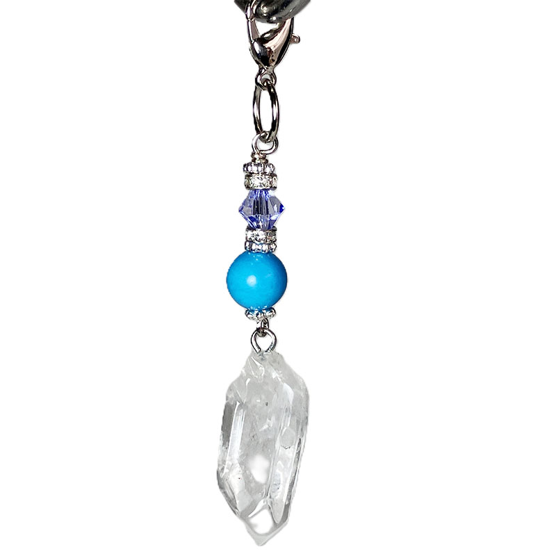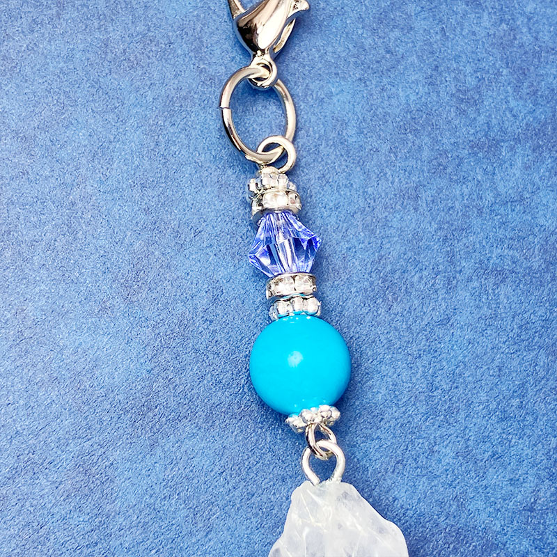デイジーシルバー×3個 ロンデル2mm×2 カニカン シルバー×1個 丸カンシルバー×1個 水晶ポイント x1個 ハウライトトルコ 8mm×1玉 |
