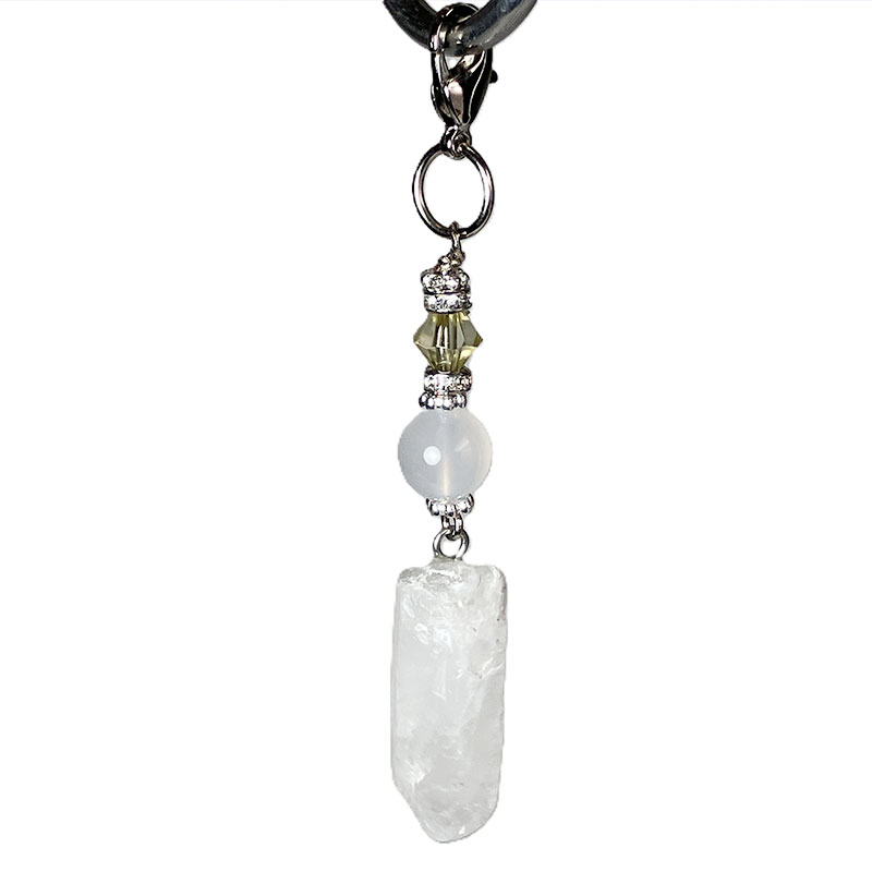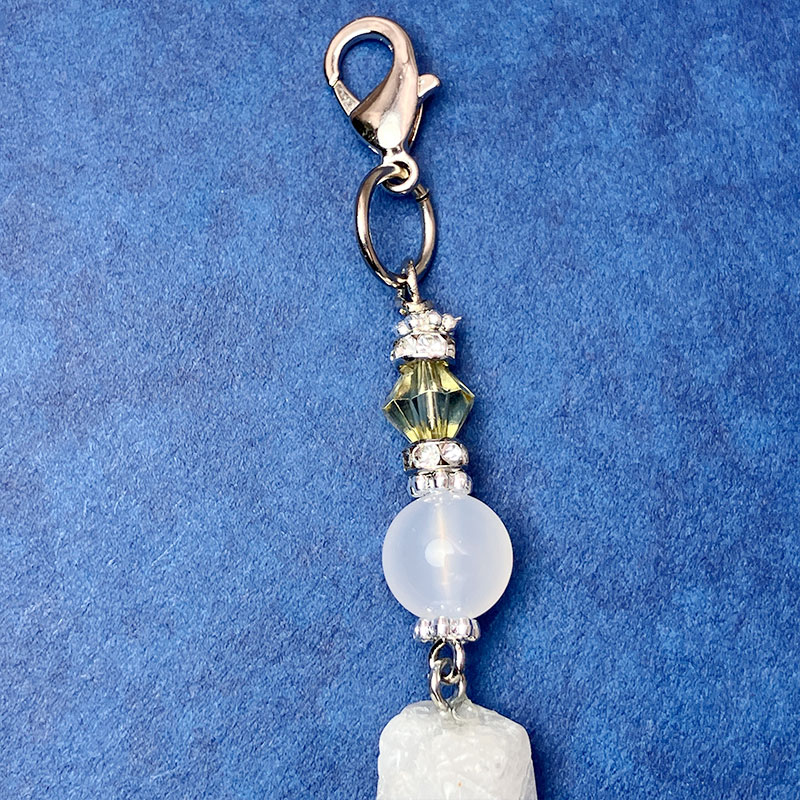 デイジーシルバー×3個 ロンデル2mm×2 カニカン シルバー×1個 丸カンシルバー×1個 水晶ポイント x1個 ホワイトメノウ 8mm×1玉 |
