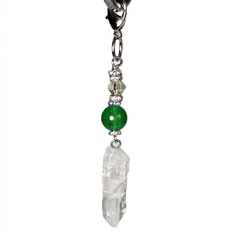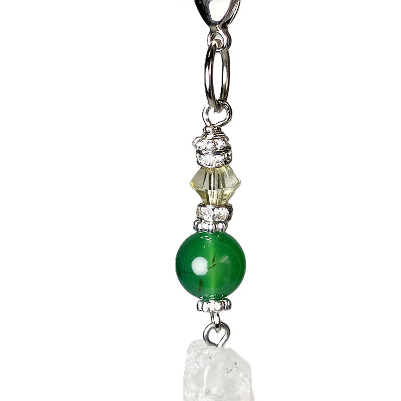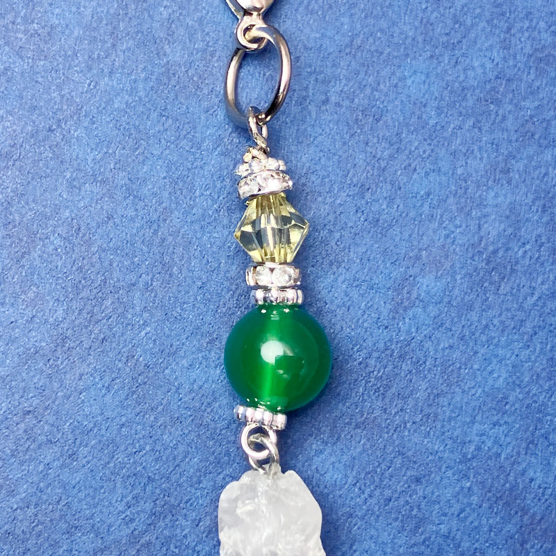 デイジーシルバー×3個 ロンデル2mm×2 カニカンシルバー×1個 丸カンシルバー×1個 水晶ポイント x1個 グリーンメノウ×1玉 |