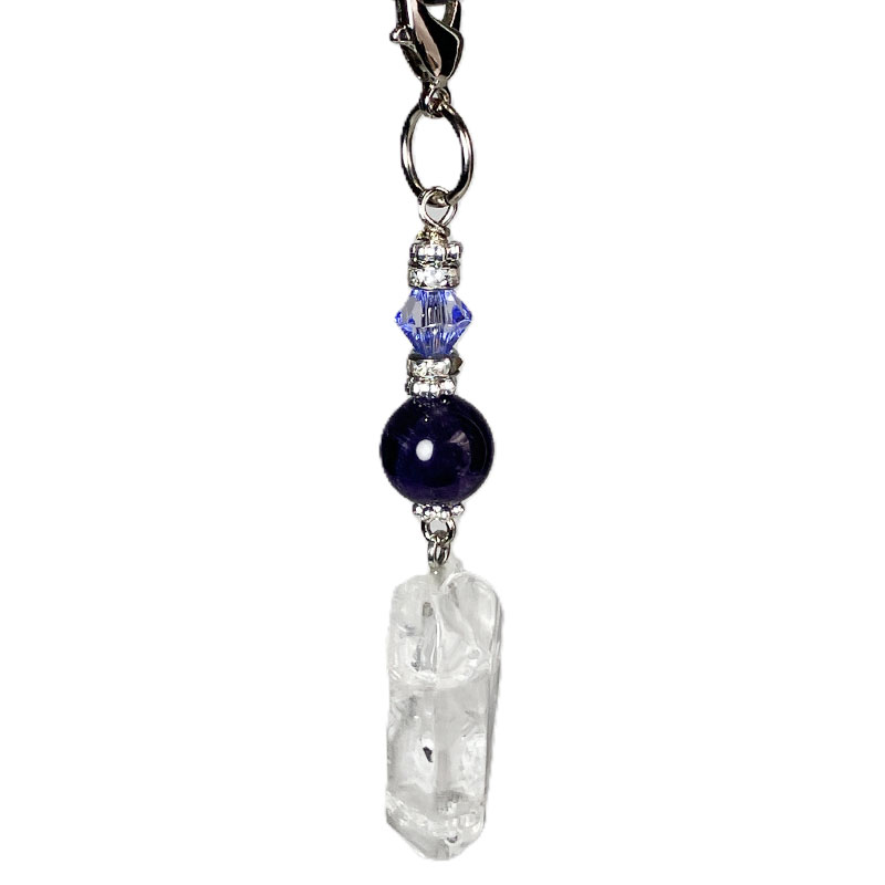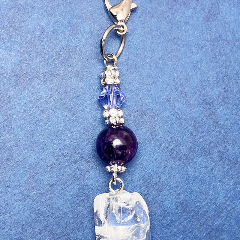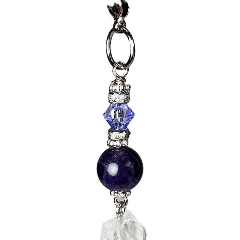 デイジーシルバー×3個 ロンデル2mm×2 カニカン シルバー×1個 丸カンシルバー×1個 水晶ポイント x1個 アメジスト 8mm×1玉 |