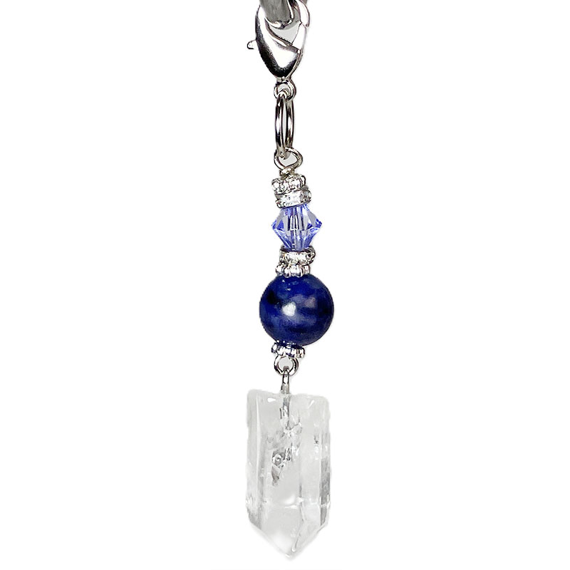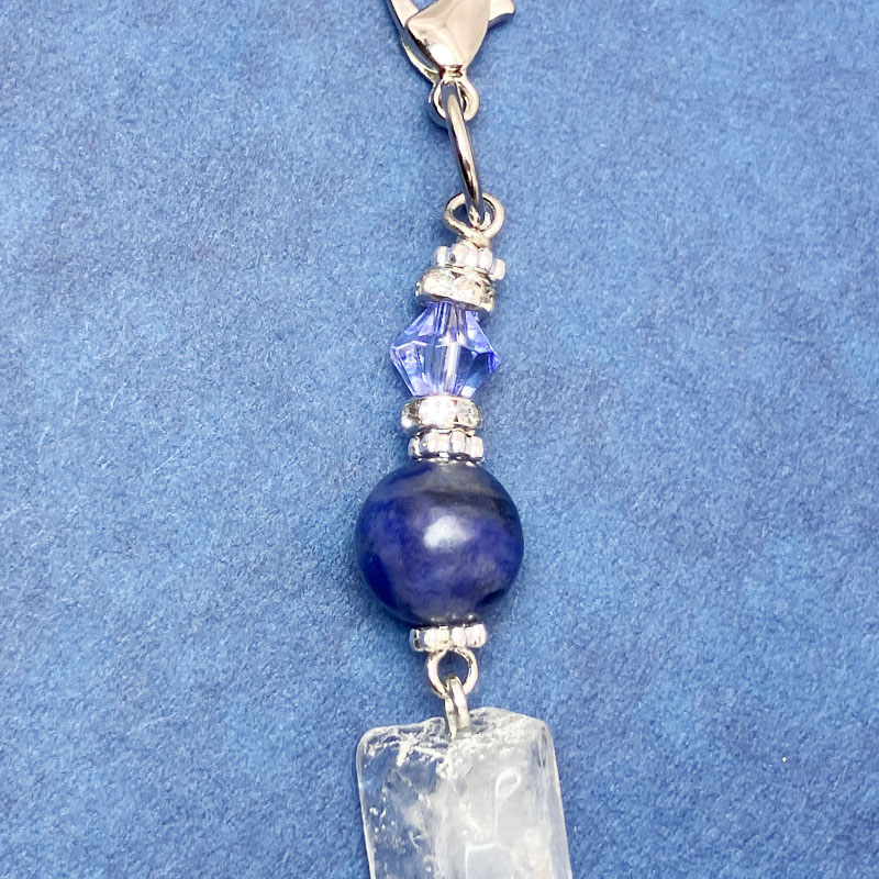 デイジーシルバー×3個 ロンデル2mm×2 カニカン シルバー×1個 丸カンシルバー×1個 水晶ポイント x1個 ソーダライト 8mm×1玉 |