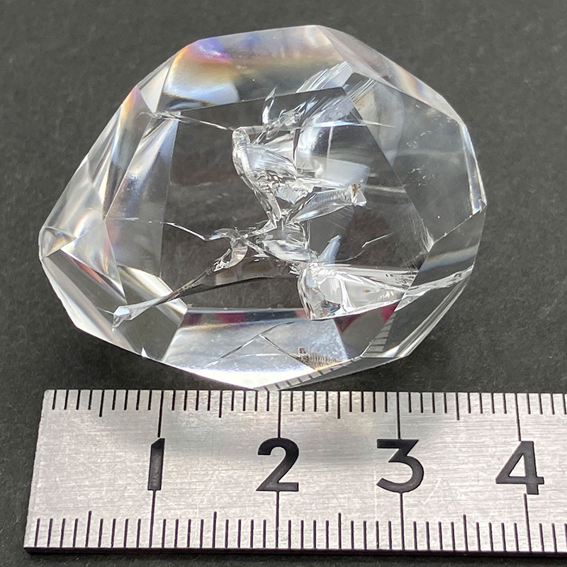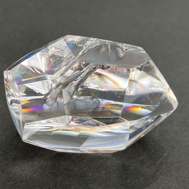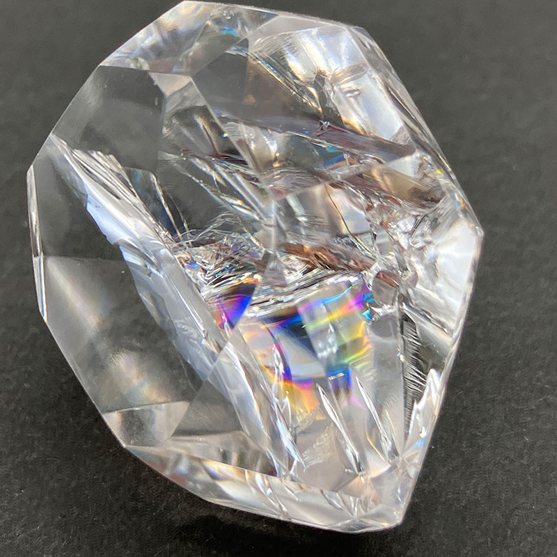 結晶や原石の形に合わせて、不規則な面カットが施された状態。