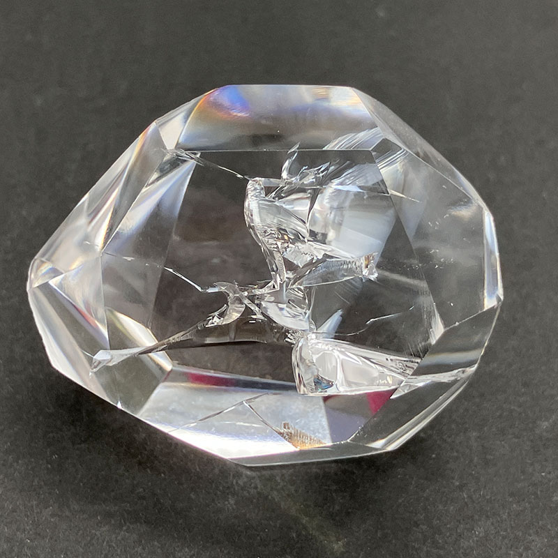 原石のままでは曇って見えていた部分も、ランダムにカットすることで