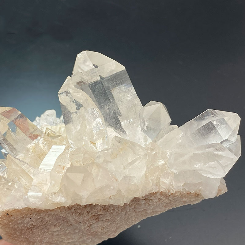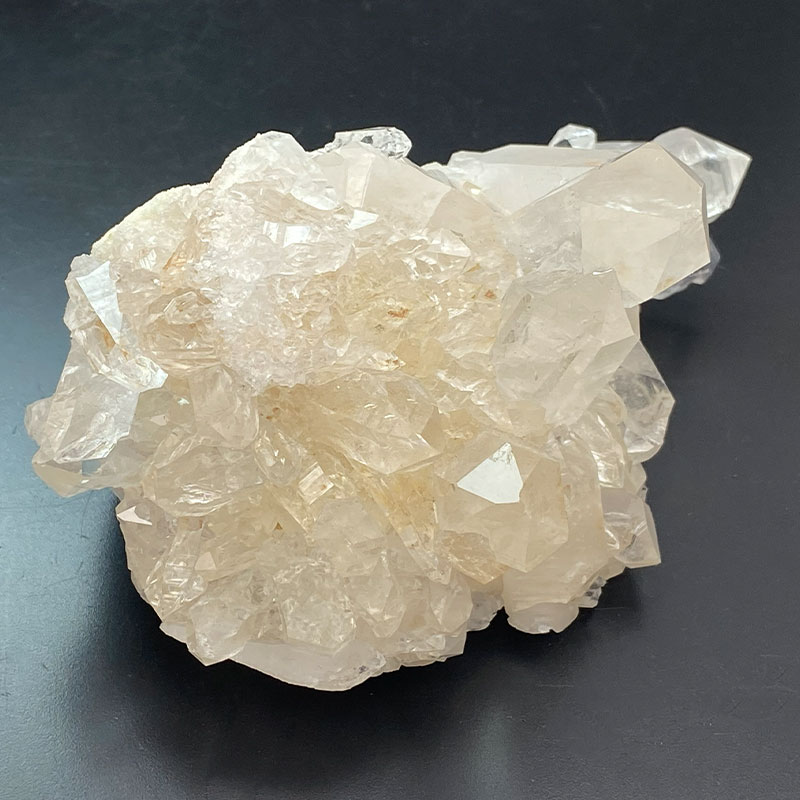 細かな水晶が散りばめられている中に、小さいながらも存在感のあるポイントが特徴のクラスター。