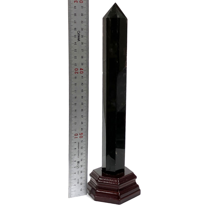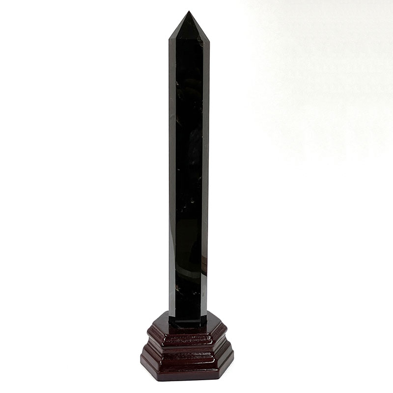 【置物/彫り物】黒水晶ポイント台付 約550g No,3921
