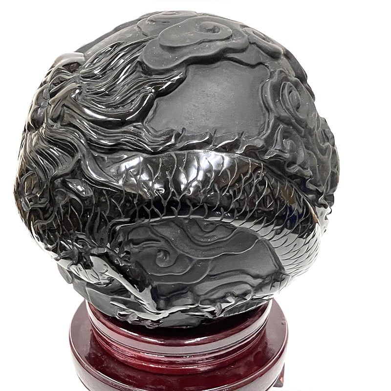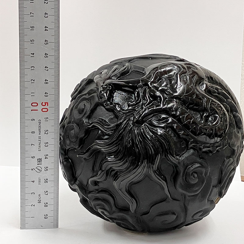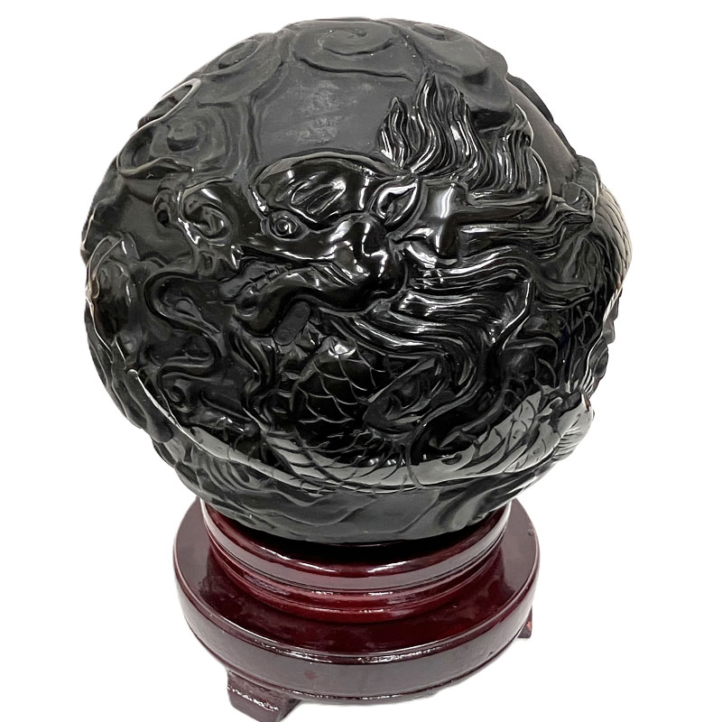 【置物/彫り物】オブシディアン 龍丸玉 No,3926