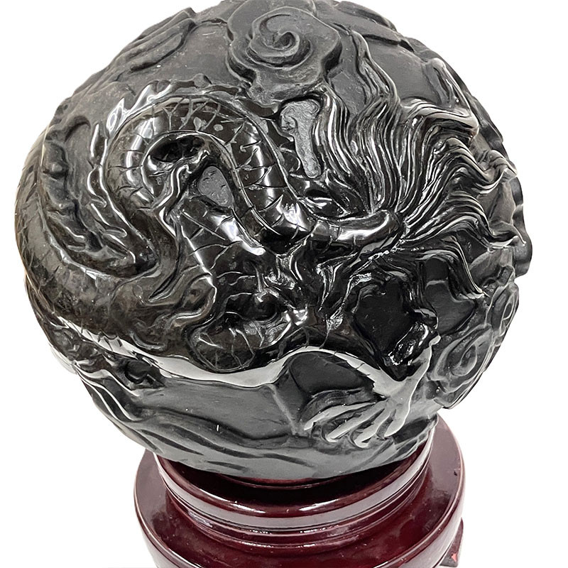 本品は龍が丸玉を包み込むように掘られており、丸玉部分は擦り、龍は艶をだされているので