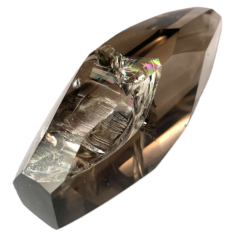 結晶や原石の形に合わせて、不規則な面カットが施された状態。