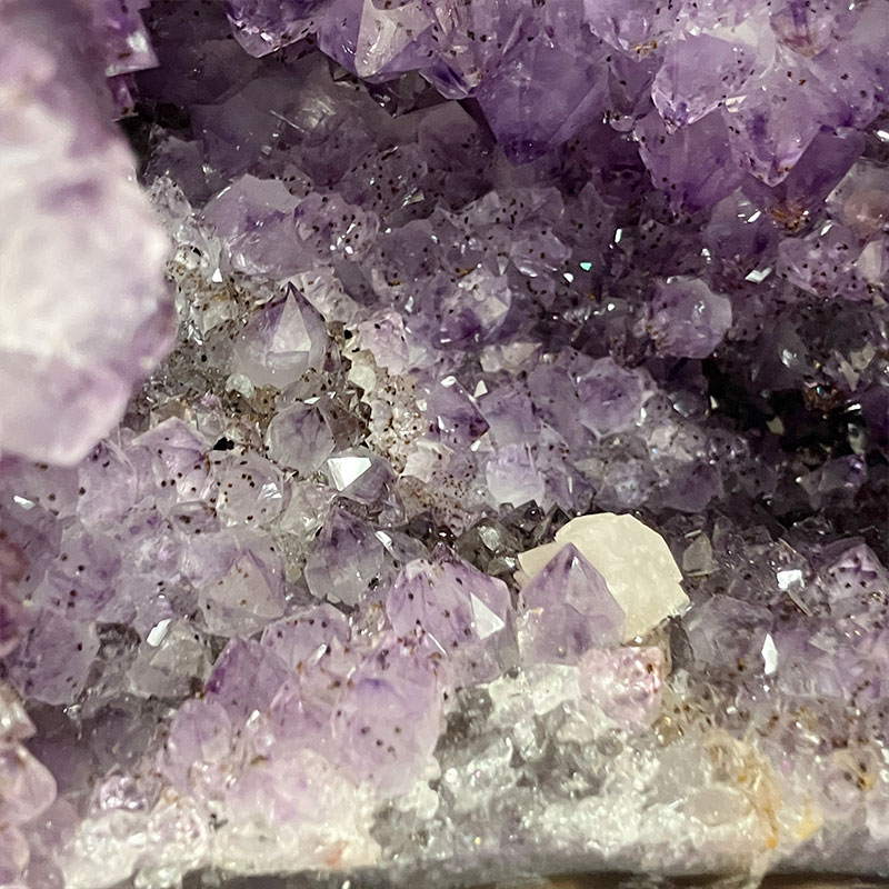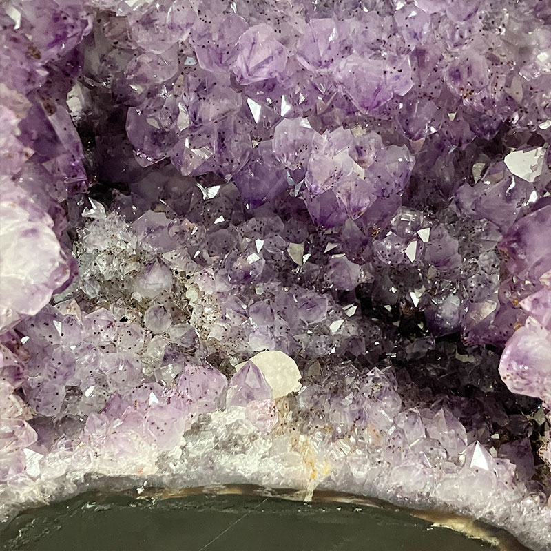 透明度が高いため、アメジストが透けて母岩の色が見えるほど。