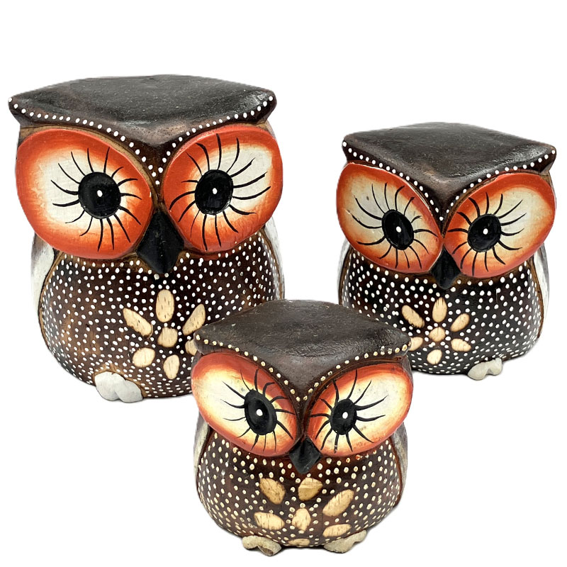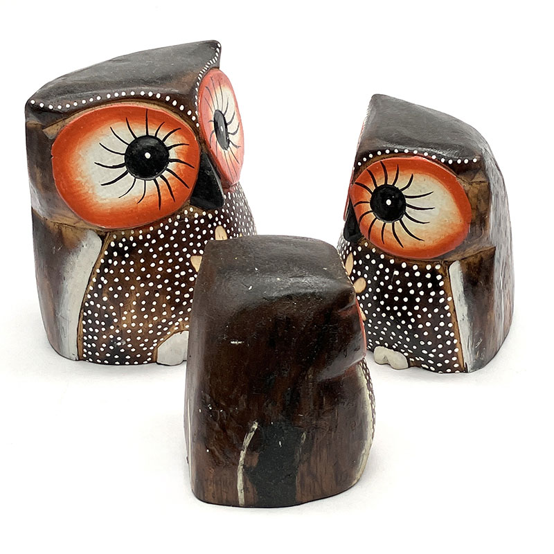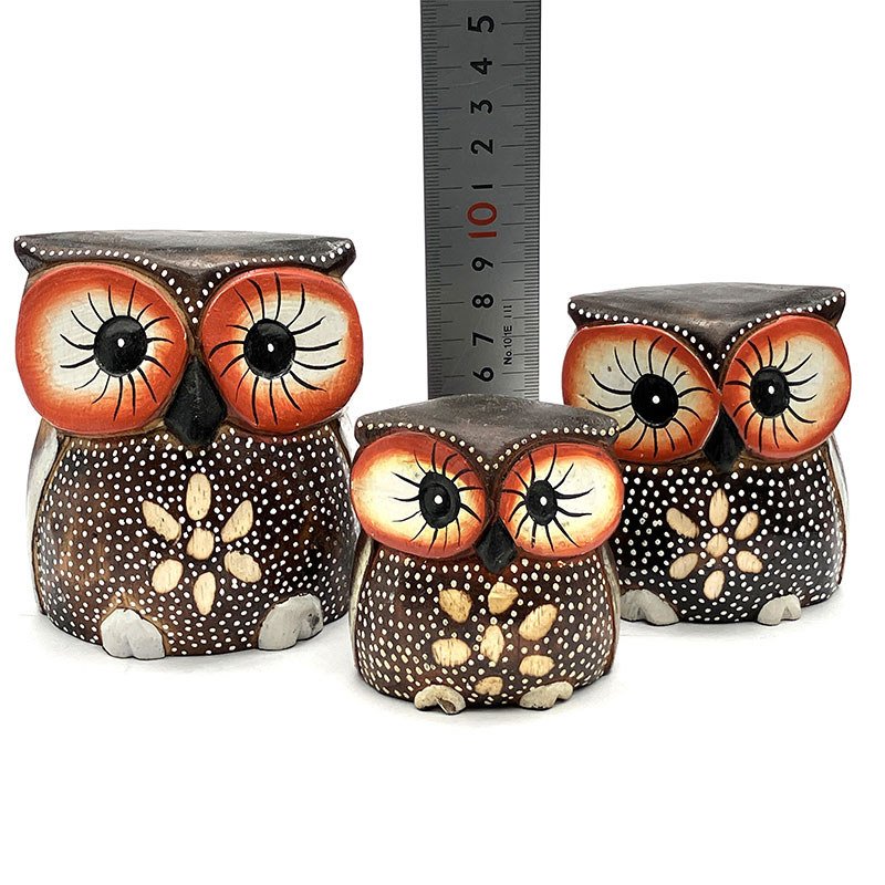 【置物/彫り物】フクロウ 3セット(木製)No,4258