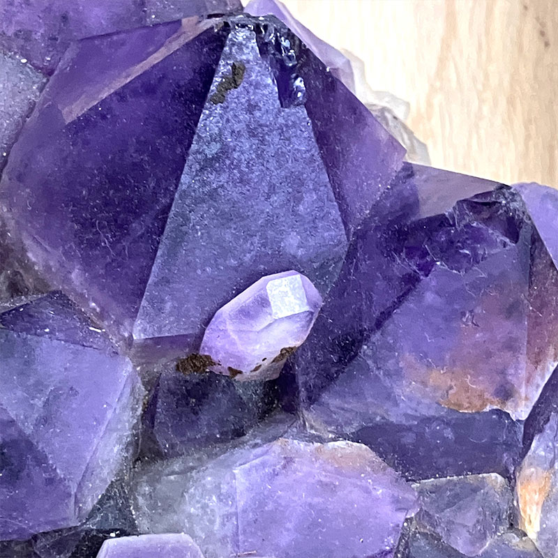 コンゴ産アメジストクラスターの和名は「紫水晶」です。アメジストは「愛の守護石」や「癒し」などの意味を持ち、特にコンゴ産は深い色合いと独特の結晶構造が特徴です。