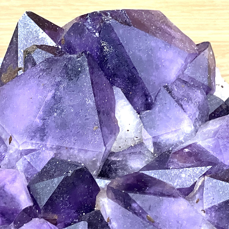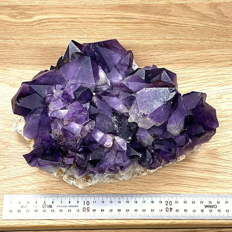 コンゴ産アメジストクラスターの和名は「紫水晶」です。アメジストは「愛の守護石」や「癒し」などの意味を持ち、特にコンゴ産は深い色合いと独特の結晶構造が特徴です。