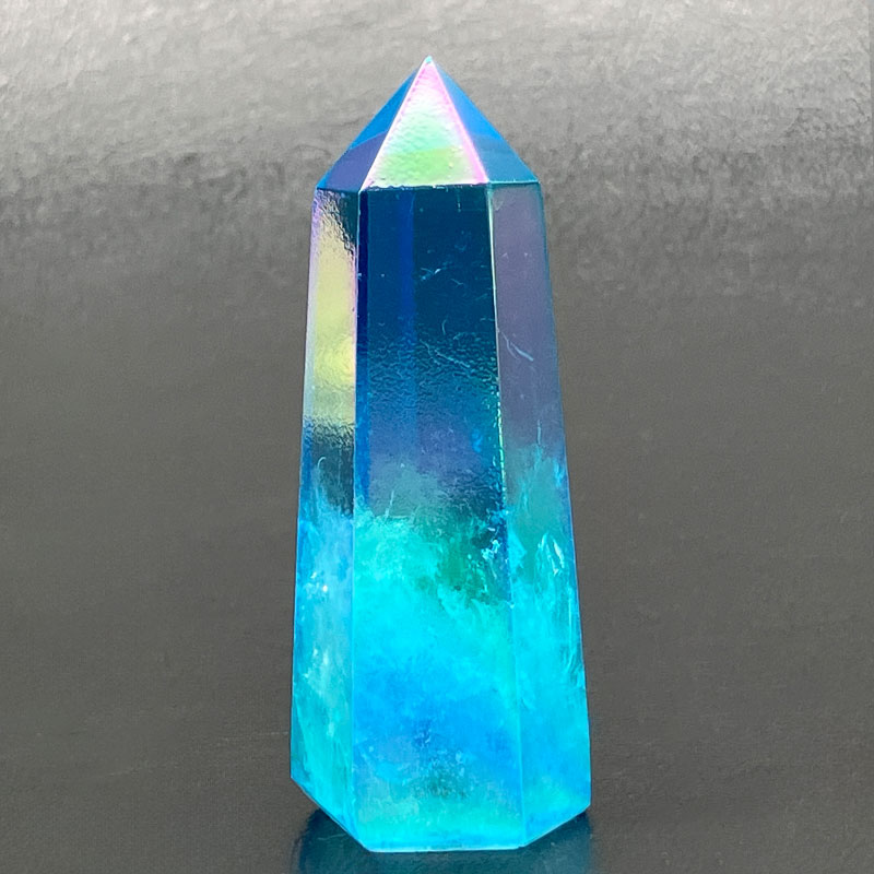 水晶に金属をコーティングし、オーラ光を演出しています。自分の魅力を引き出してくれると云われています。