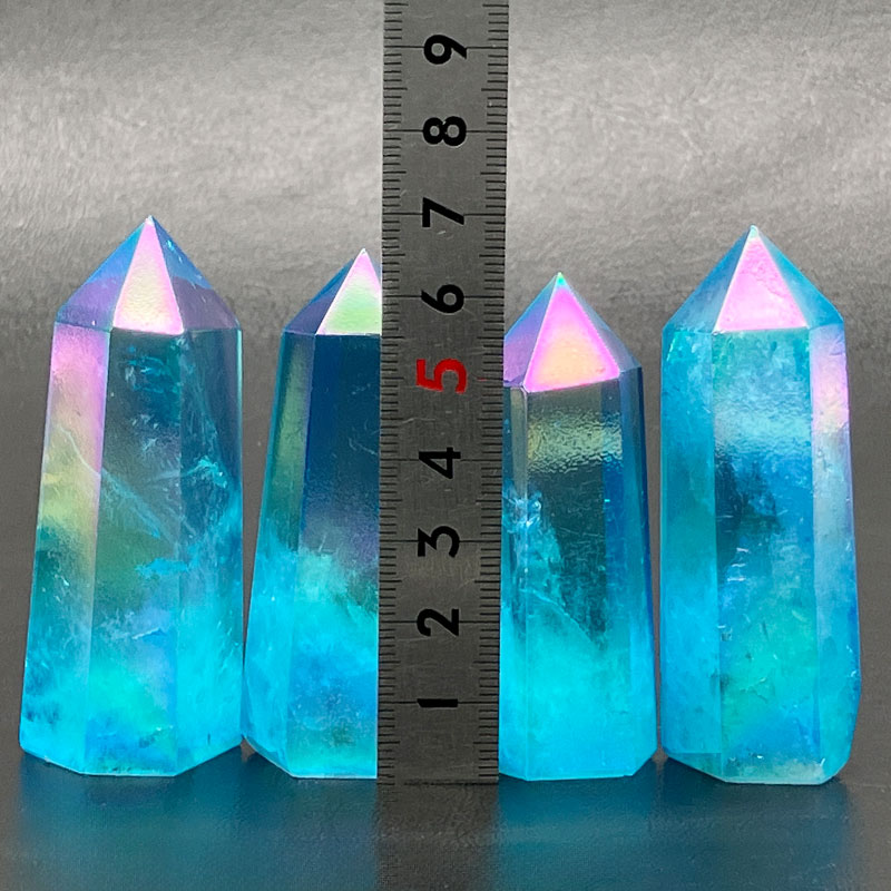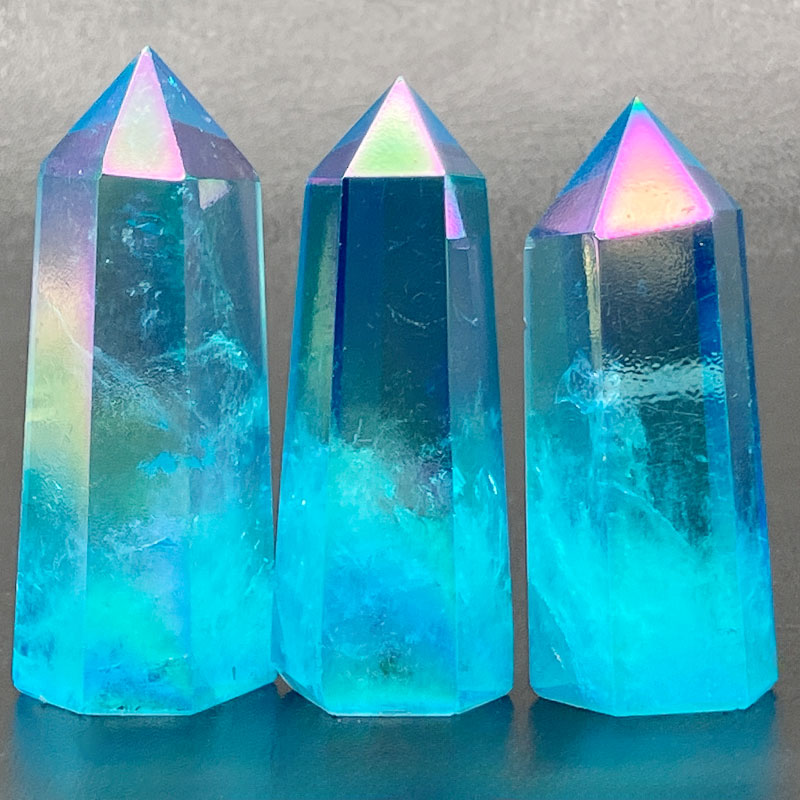 水晶の表面に1600°Cの高熱でイオン化したチタンや金属を真空蒸着させたもの。