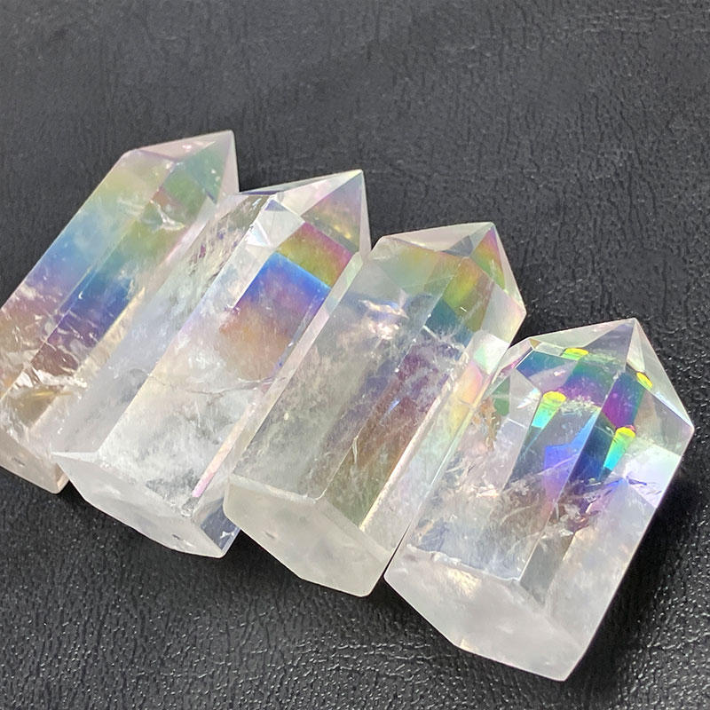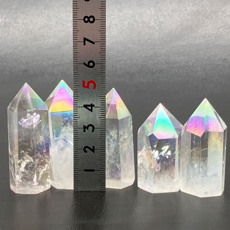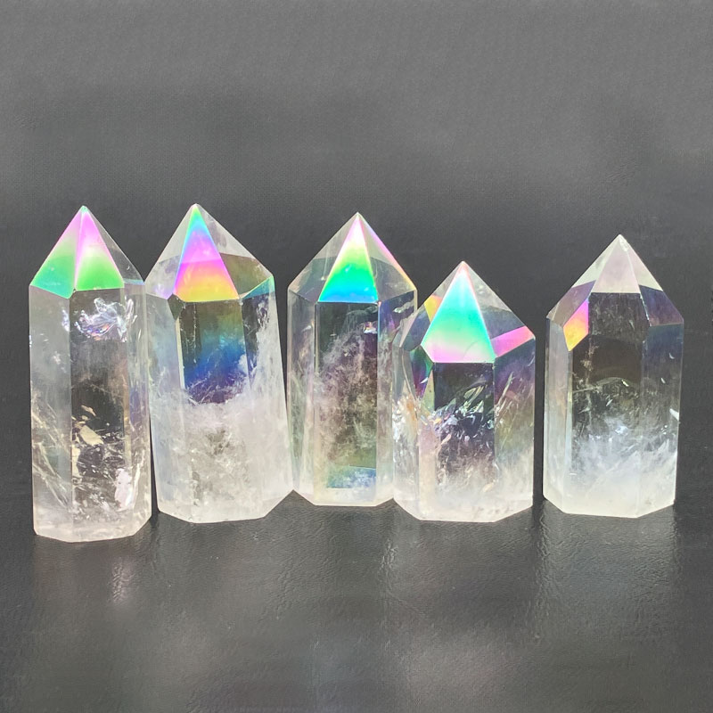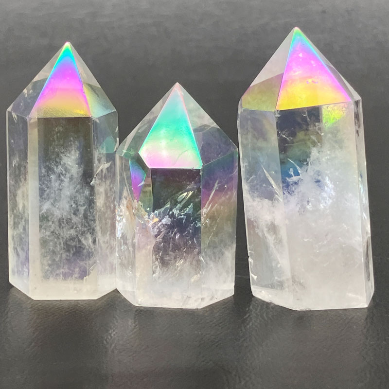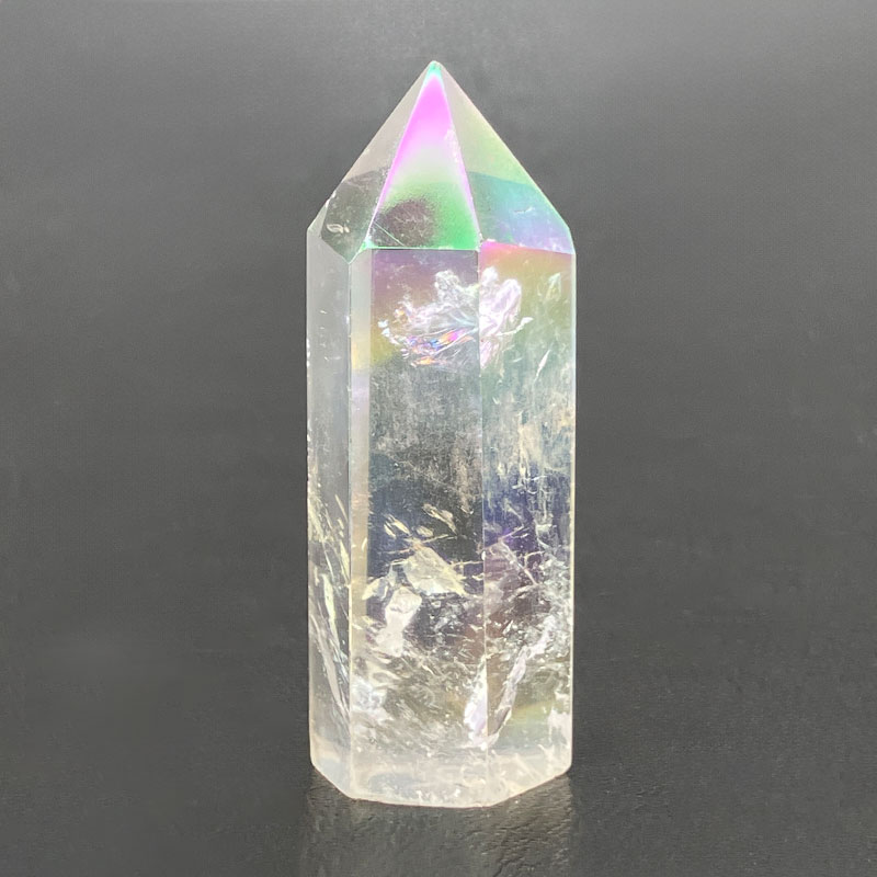 水晶の表面に1600°Cの高熱でイオン化したチタンや金属を真空蒸着させたもの。