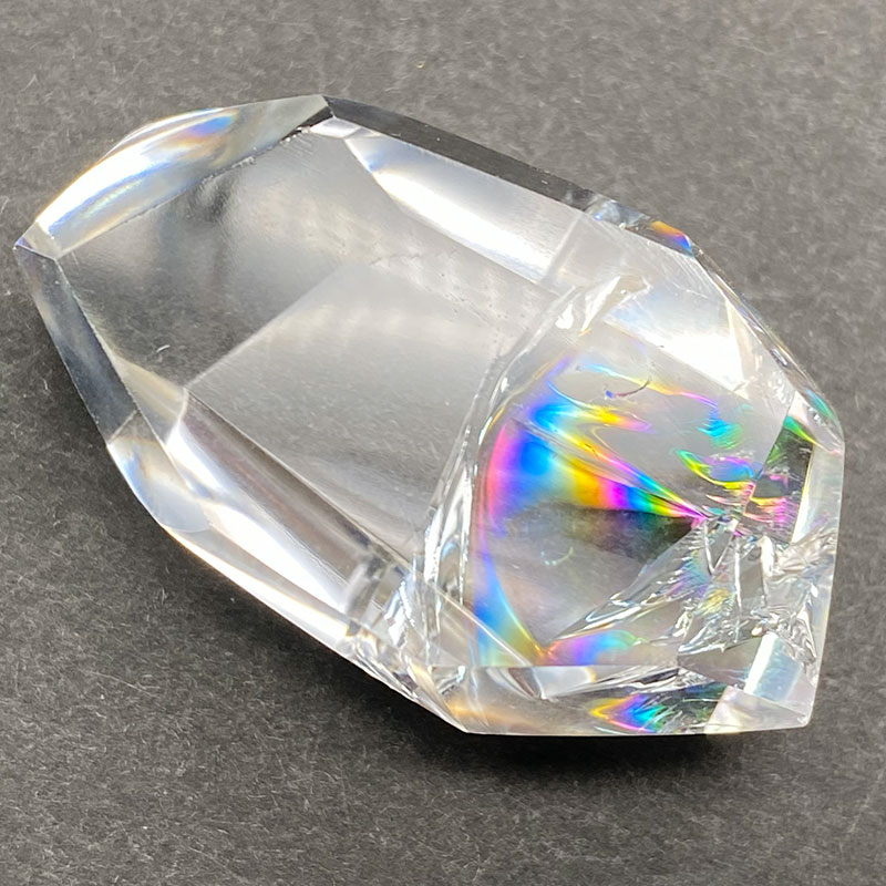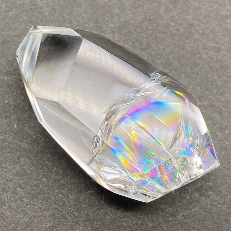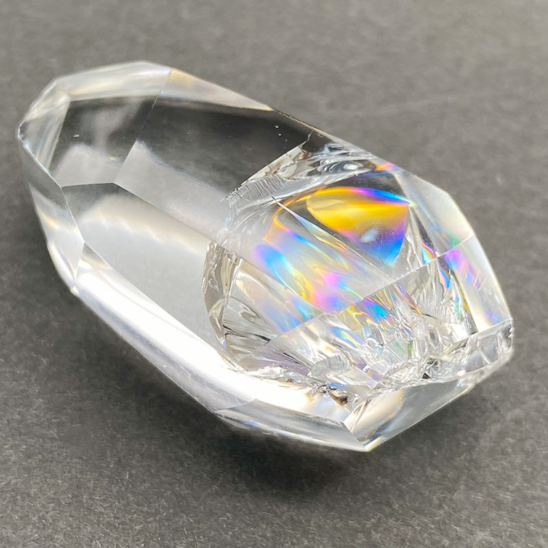結晶や原石の形に合わせて、不規則な面カットが施された状態。