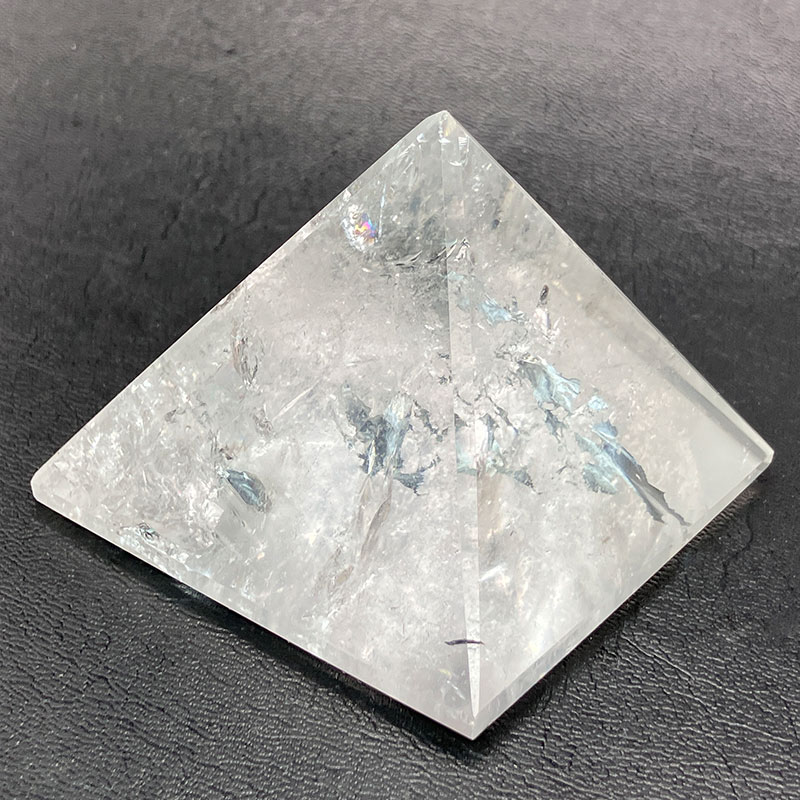 ピラミッドは聖なる山を象徴し、高い理想に向かって突き進むパワーを引き出してくれると云われ、また水晶にはすべてのものを清める浄化作用と、ふれ合った(またはそばに置いた)天然石や空間の、よいエネルギー(気)を強める効果をもたらすと云われています。