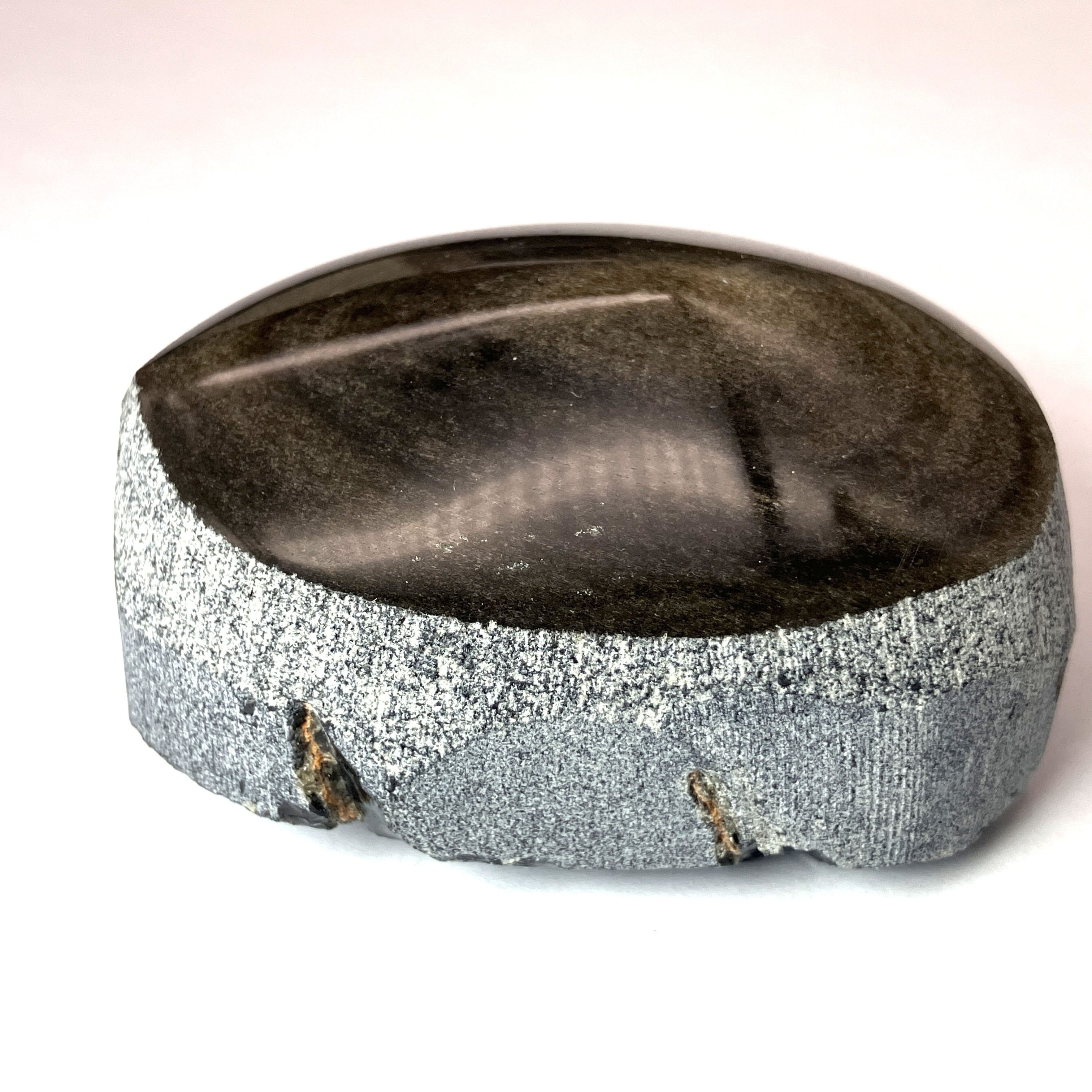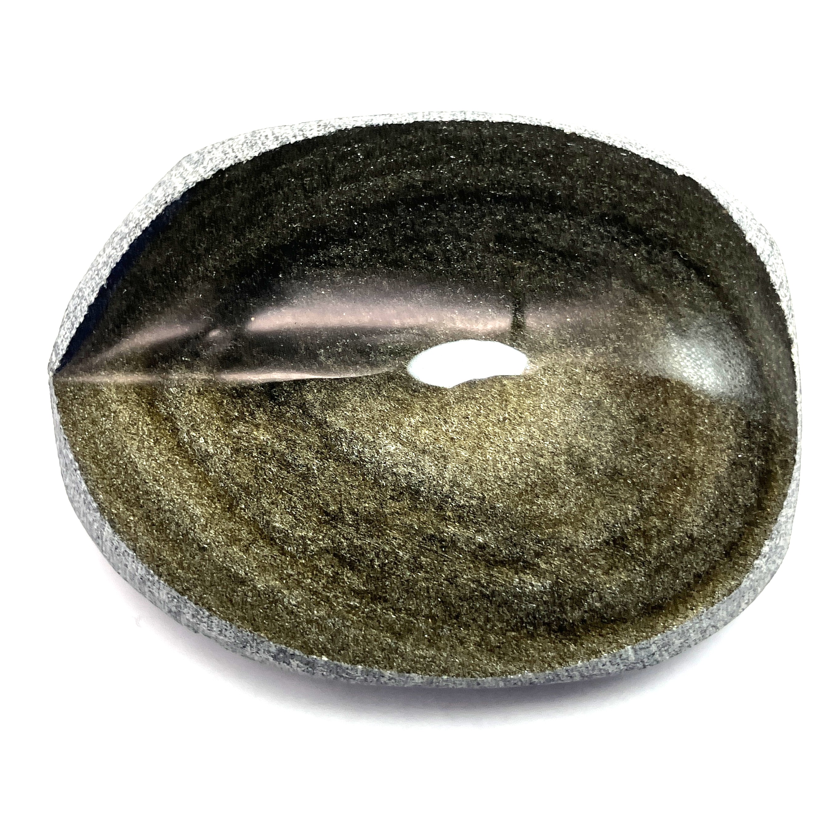 金色のシラーが浮かび光る、火山活動で溶岩が急激に冷えてできた天然ガラス。