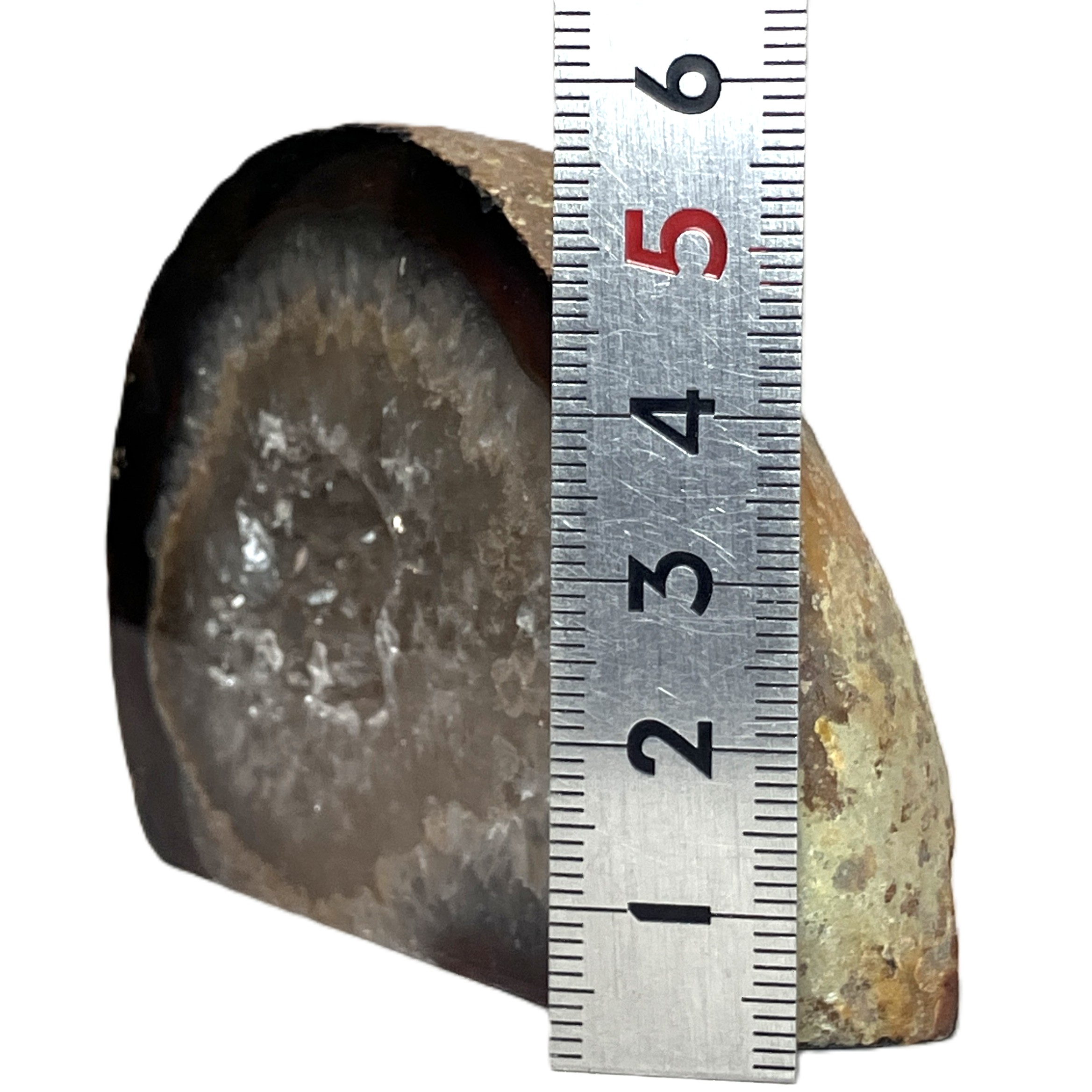 これはメノウ原石の内側に空洞があり、そこに地下水などが流れ込み