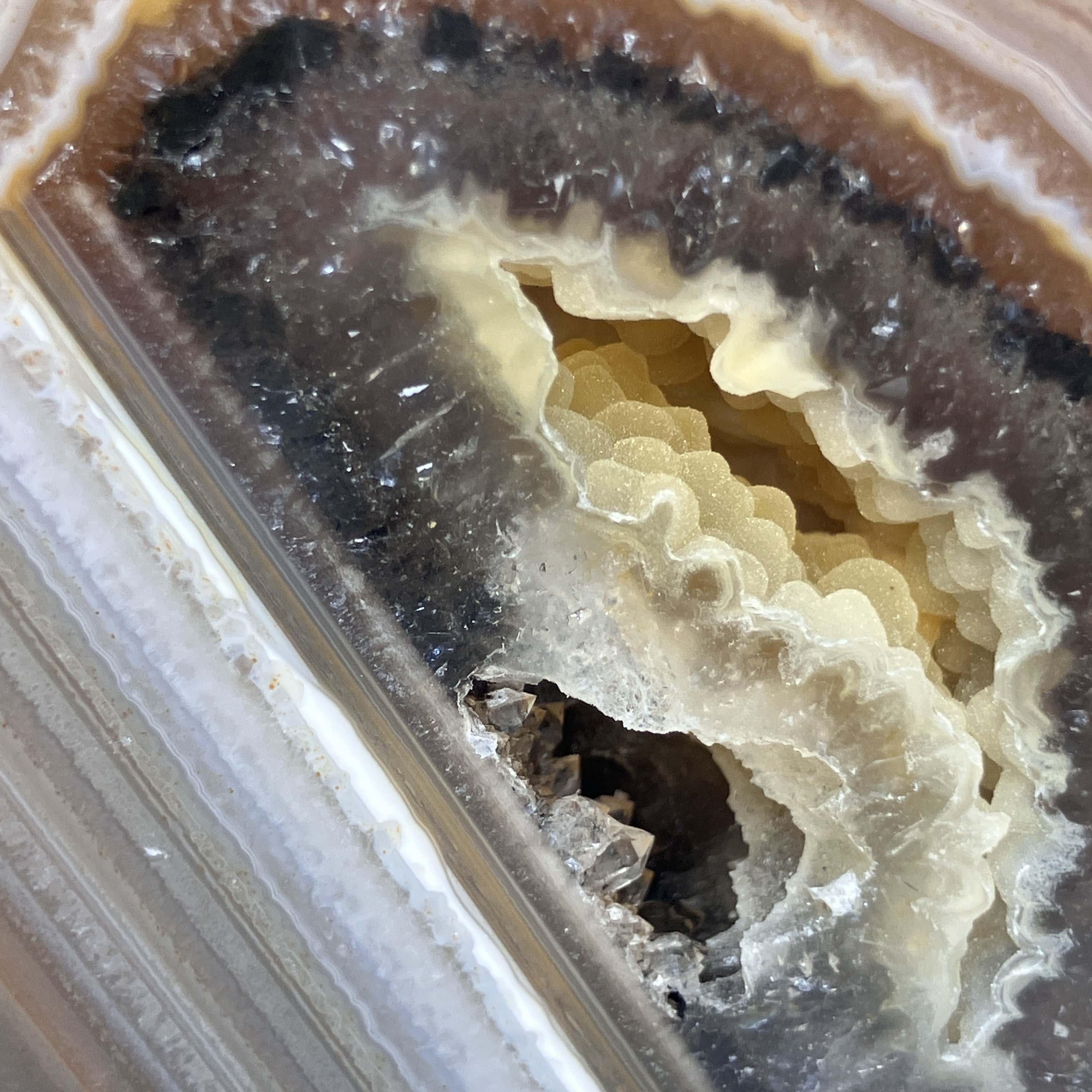 これはメノウ原石の内側に空洞があり、そこに地下水などが流れ込み
