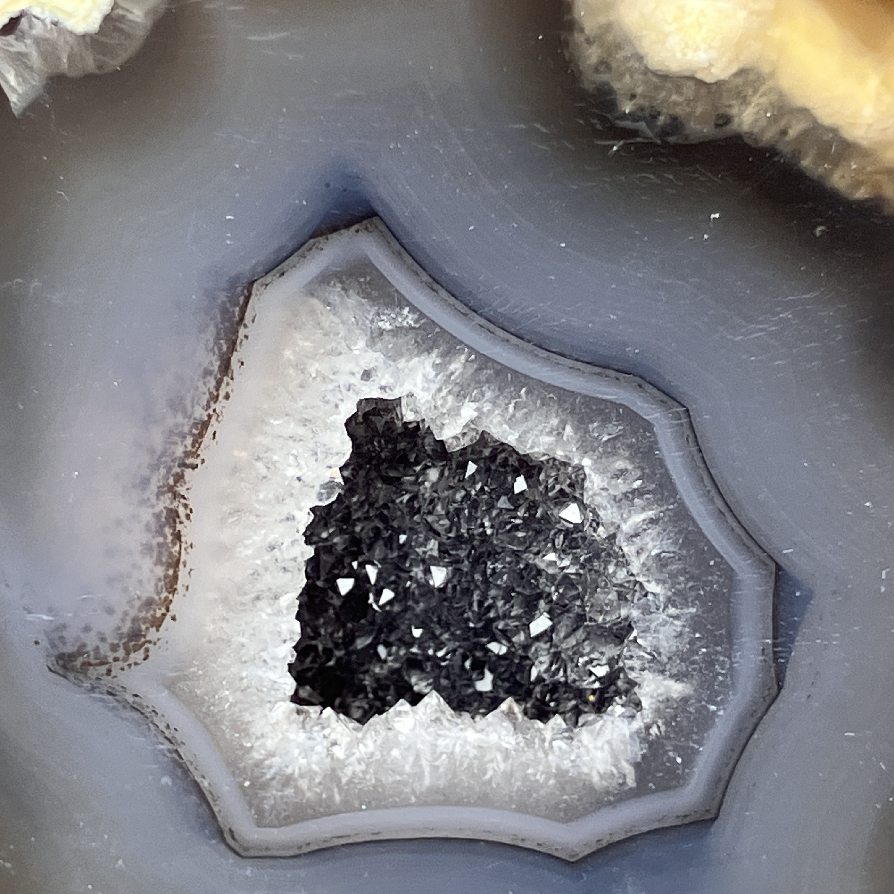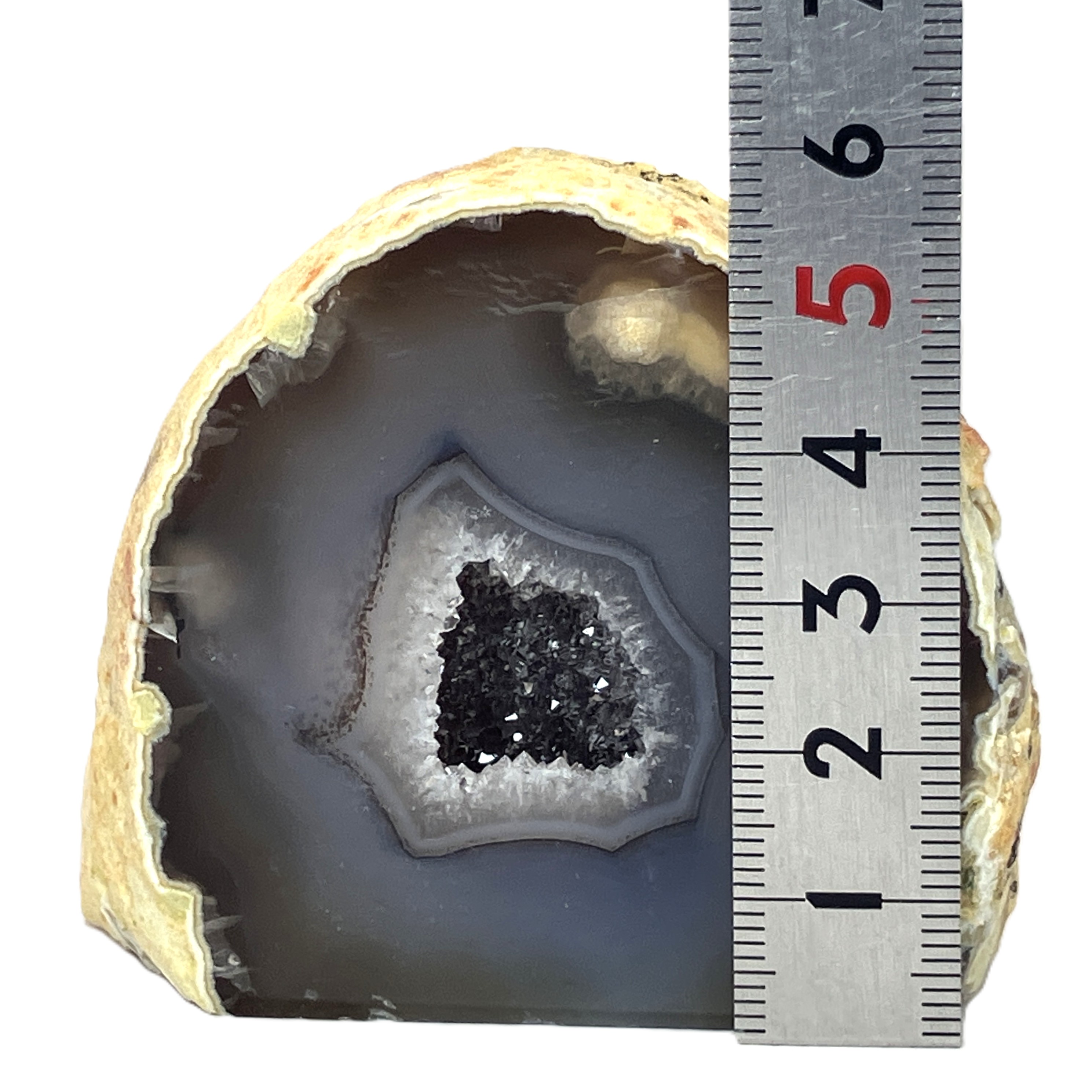これはメノウ原石の内側に空洞があり、そこに地下水などが流れ込み