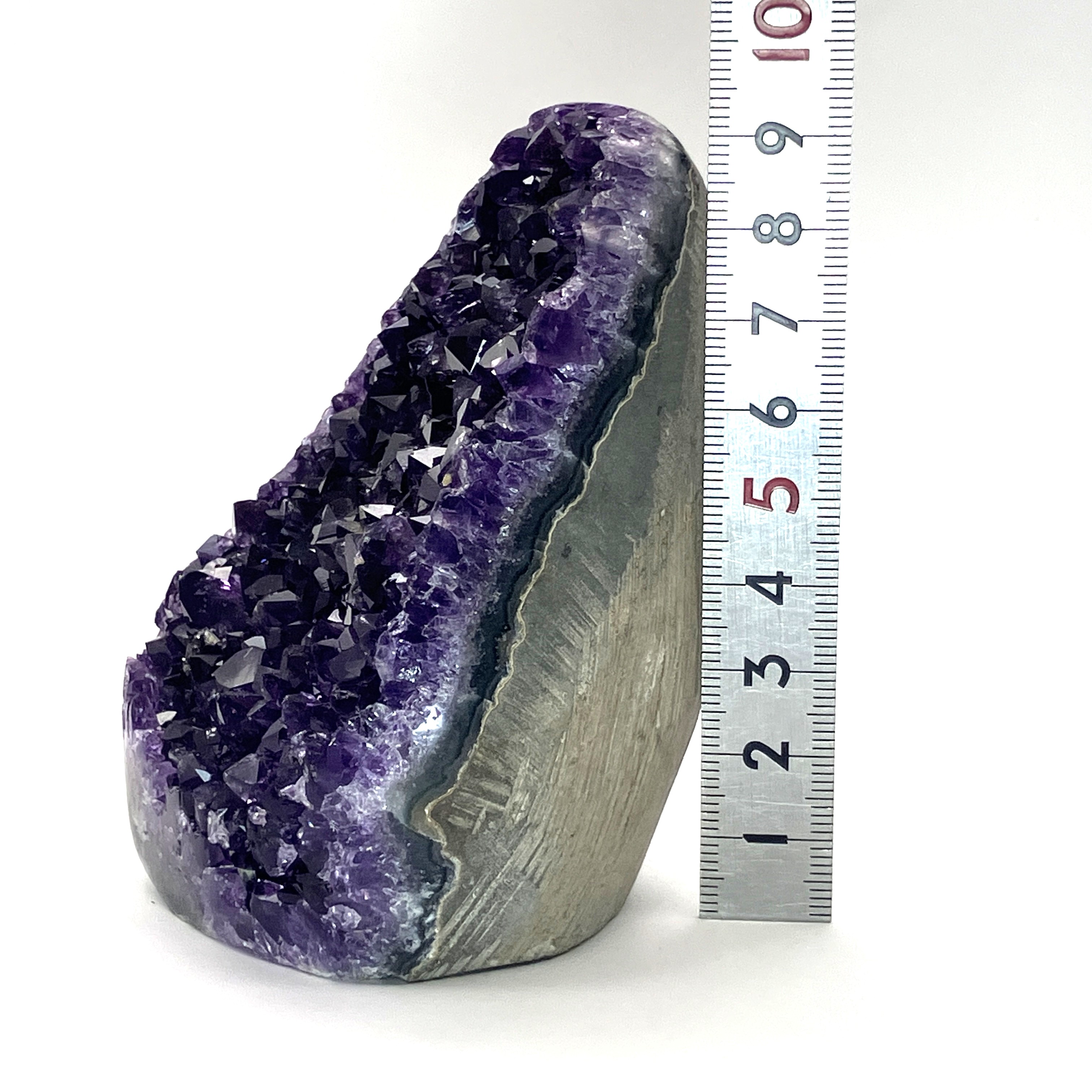 底辺カットポリッシュとは、アメジストの原石の底面を平らにカットし、研磨加工を施したものです。これにより、安定して自立させることができ、光の反射も美しくなります。