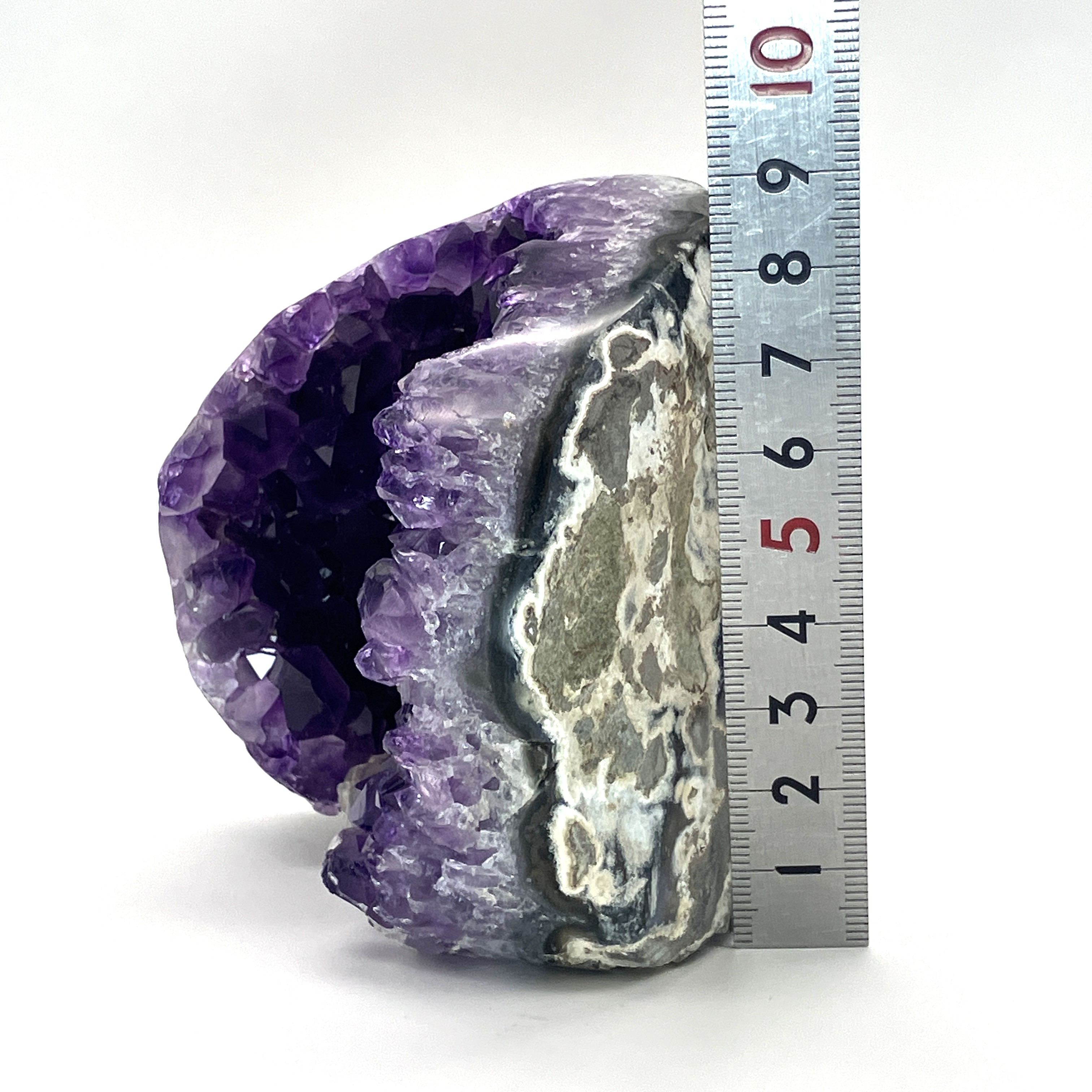 底辺カットポリッシュとは、アメジストの原石の底面を平らにカットし、研磨加工を施したものです。これにより、安定して自立させることができ、光の反射も美しくなります。