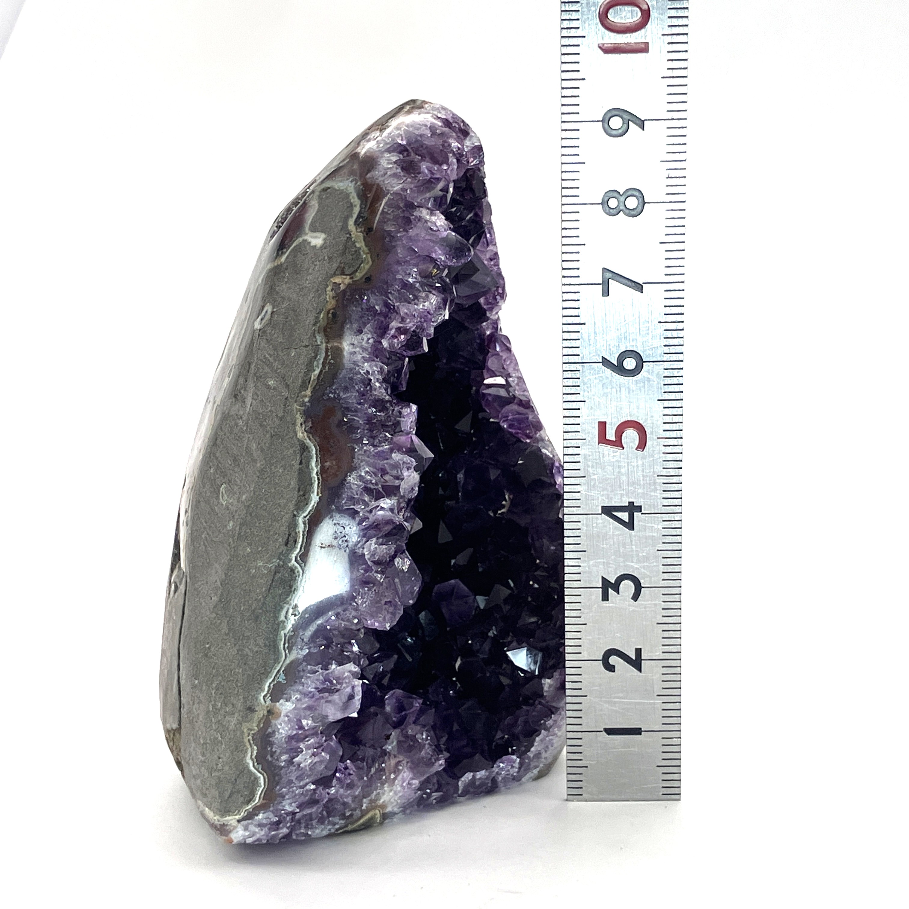 底辺カットポリッシュとは、アメジストの原石の底面を平らにカットし、研磨加工を施したものです。これにより、安定して自立させることができ、光の反射も美しくなります。