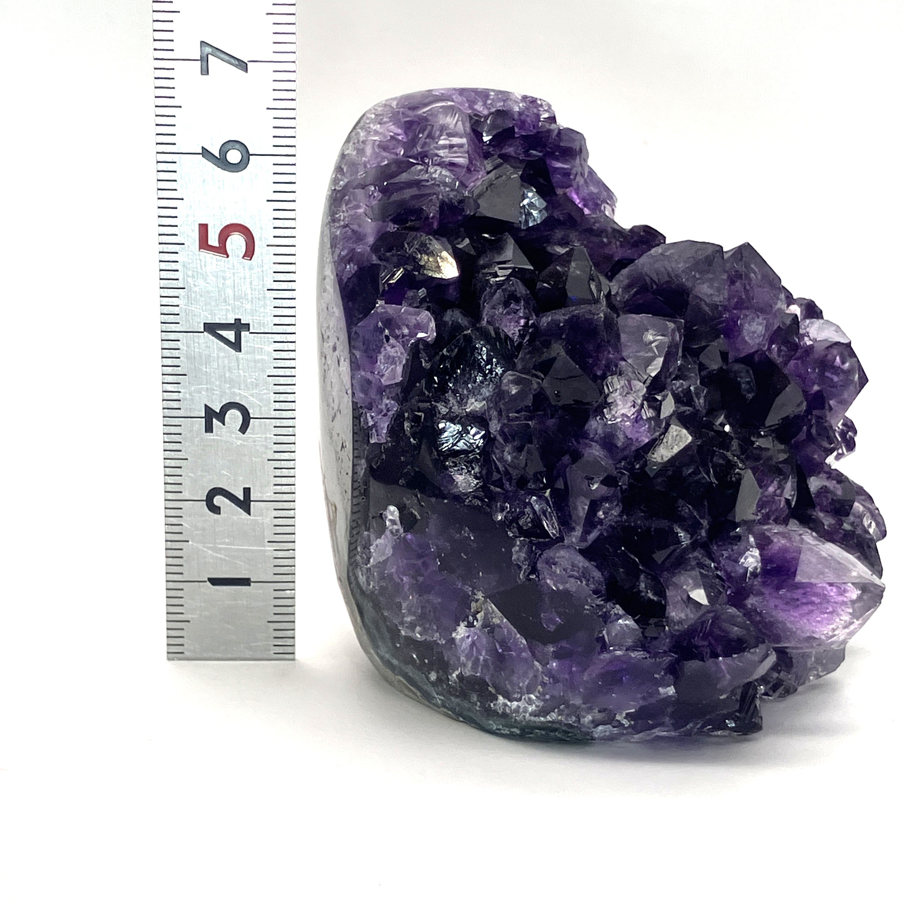 底辺カットポリッシュとは、アメジストの原石の底面を平らにカットし、研磨加工を施したものです。これにより、安定して自立させることができ、光の反射も美しくなります。