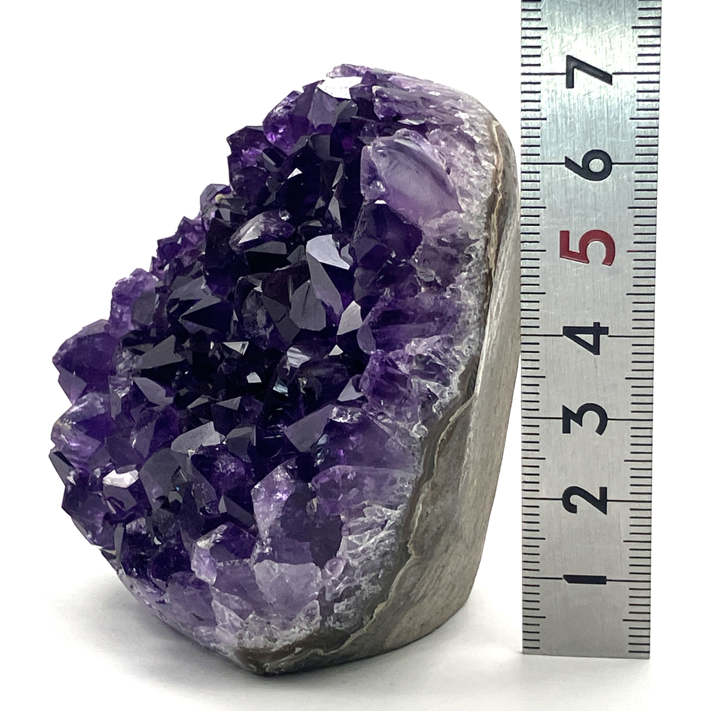 底辺カットポリッシュとは、アメジストの原石の底面を平らにカットし、研磨加工を施したものです。これにより、安定して自立させることができ、光の反射も美しくなります。