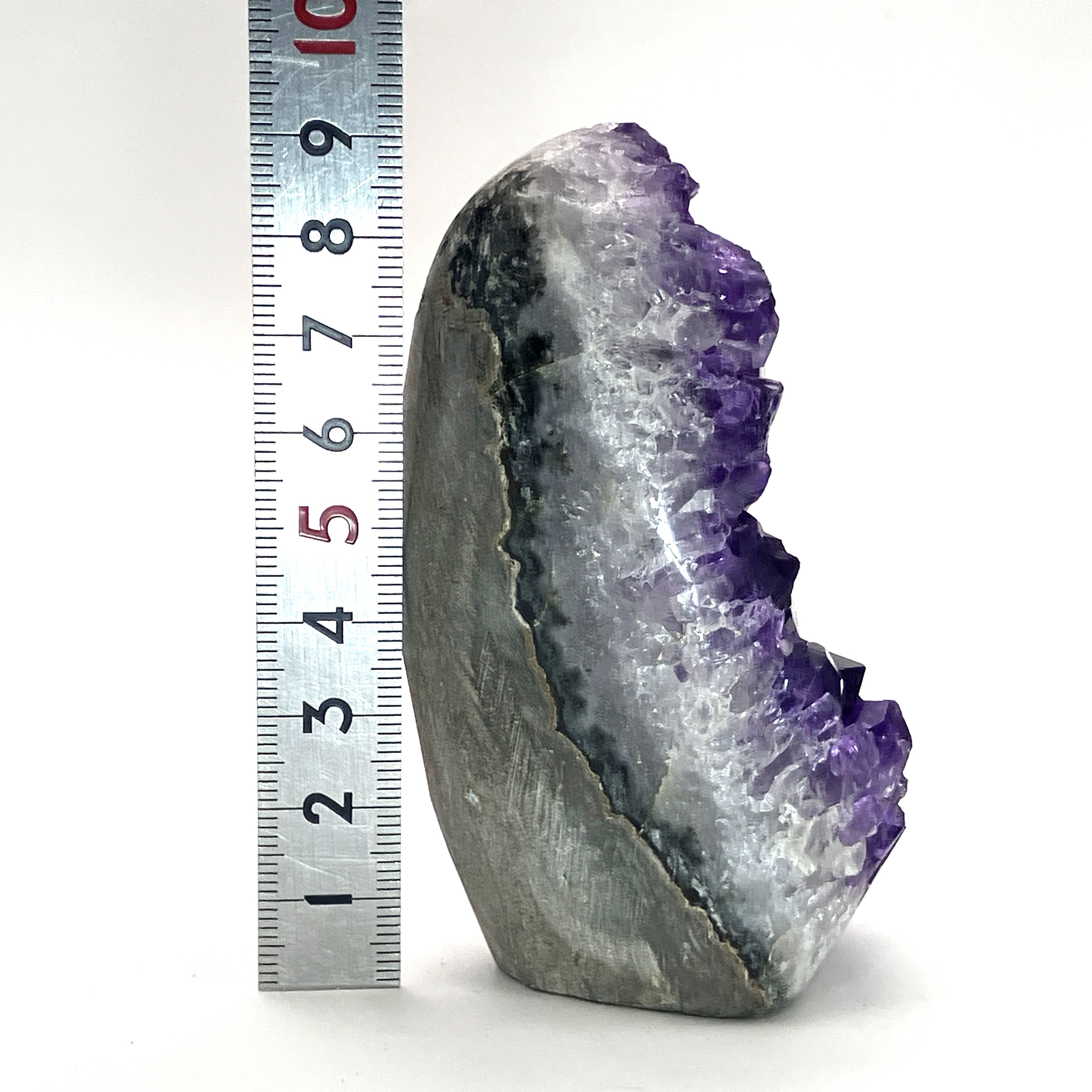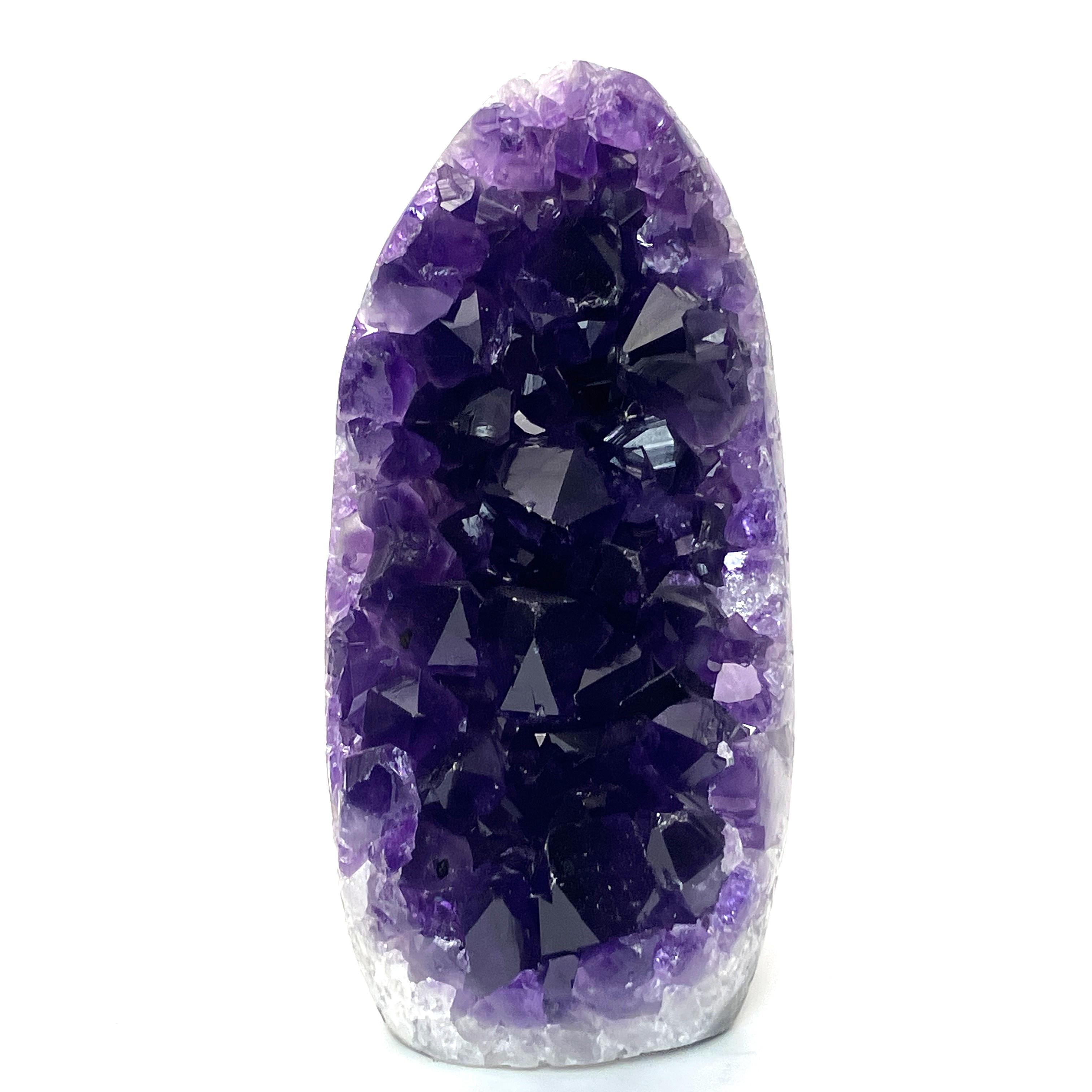 底辺カットポリッシュとは、アメジストの原石の底面を平らにカットし、研磨加工を施したものです。これにより、安定して自立させることができ、光の反射も美しくなります。
