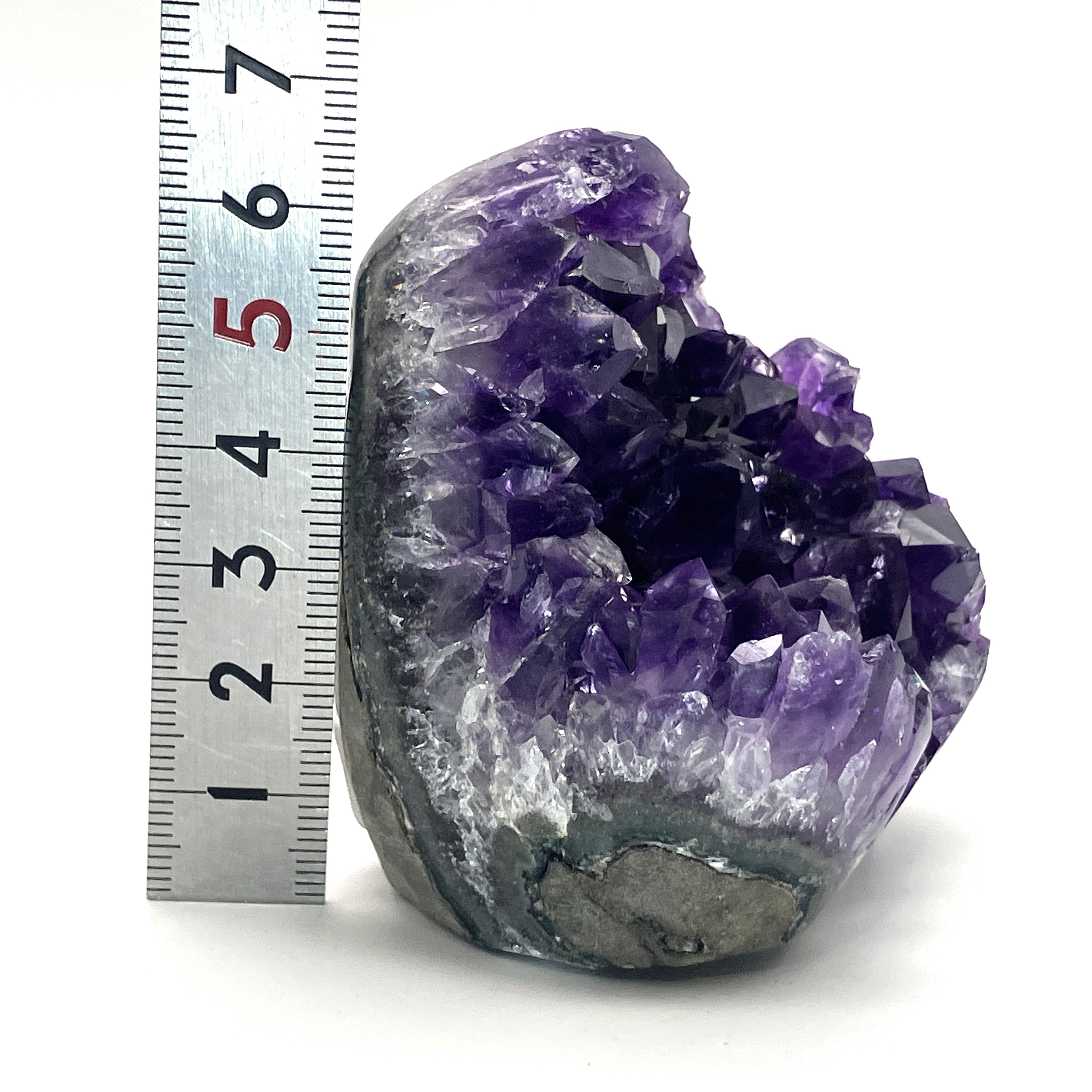 底辺カットポリッシュとは、アメジストの原石の底面を平らにカットし、研磨加工を施したものです。これにより、安定して自立させることができ、光の反射も美しくなります。
