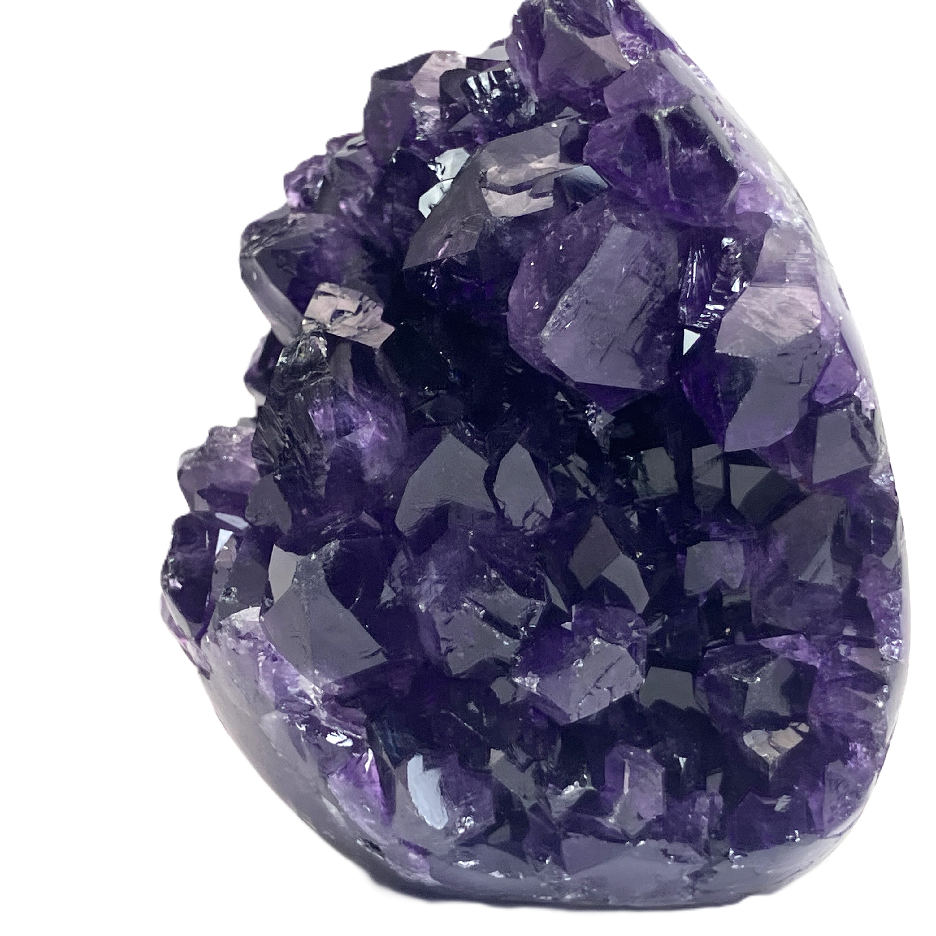 底辺カットポリッシュとは、アメジストの原石の底面を平らにカットし、研磨加工を施したものです。これにより、安定して自立させることができ、光の反射も美しくなります。