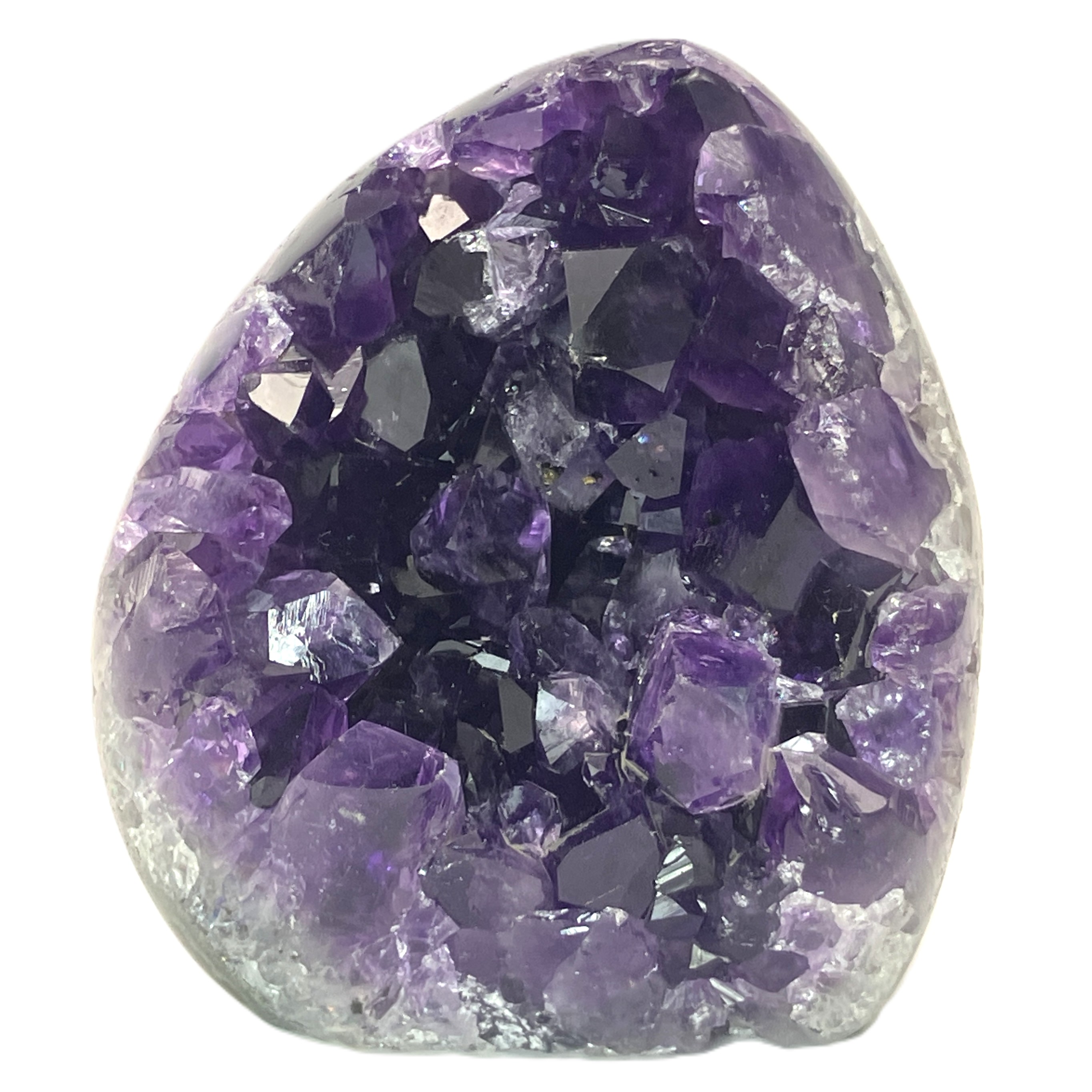 底辺カットポリッシュとは、アメジストの原石の底面を平らにカットし、研磨加工を施したものです。これにより、安定して自立させることができ、光の反射も美しくなります。