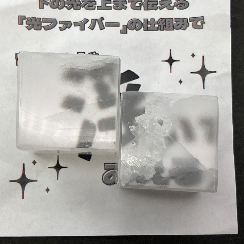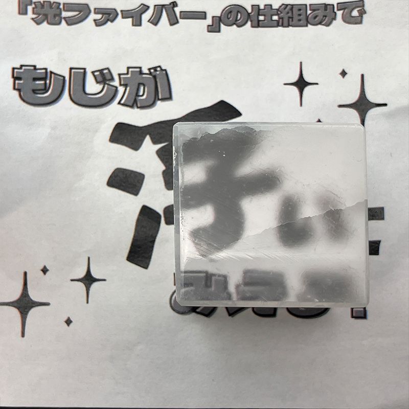 文字の上に乗せると、文字が結晶の上辺にうかびあがるような