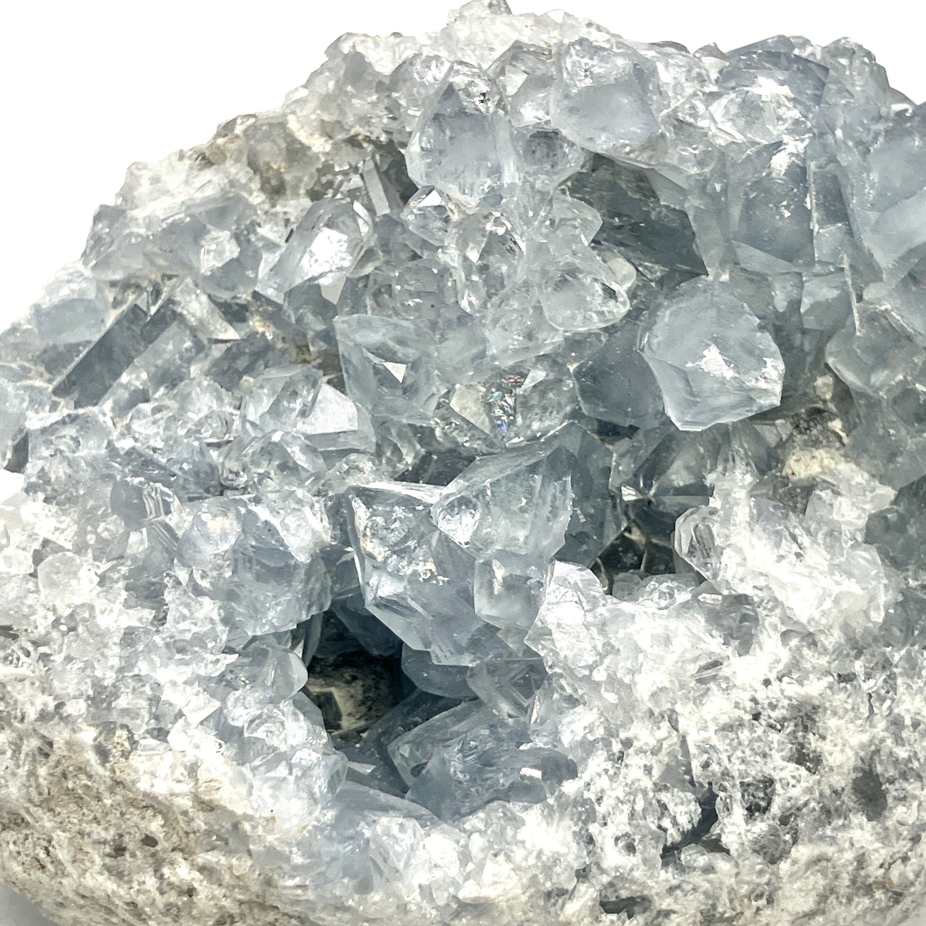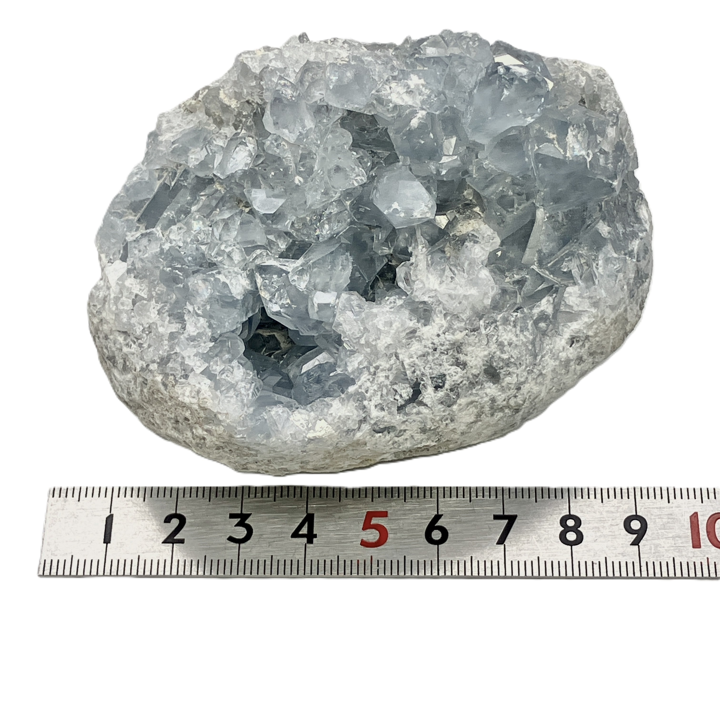 セレスタイトは、美しい淡いブルーを持つ鉱物で、その透明感と穏やかな色合いから「天の石」とも呼ばれています。