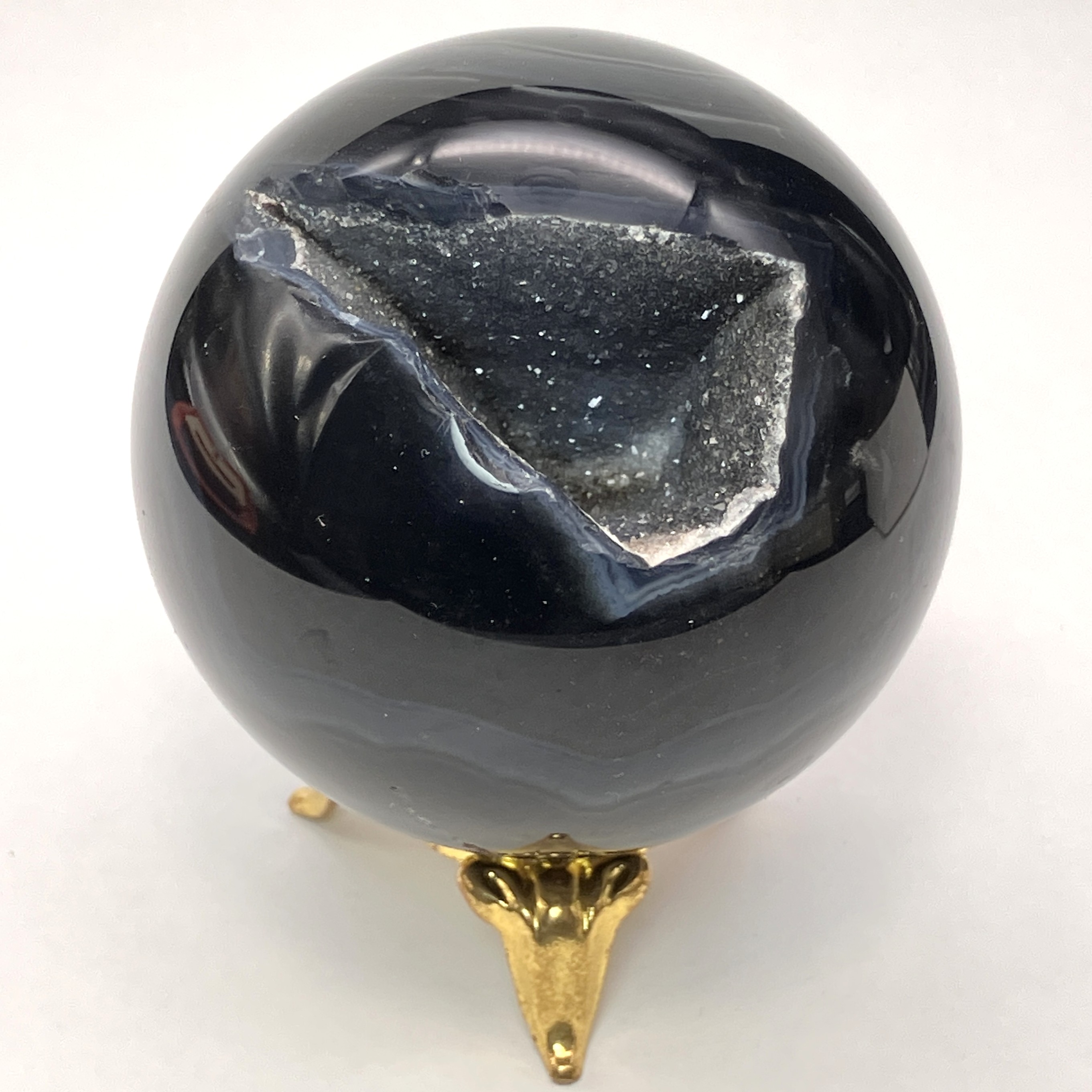 【置物/彫り物】ブラックメノウ丸玉 約250g No,5066