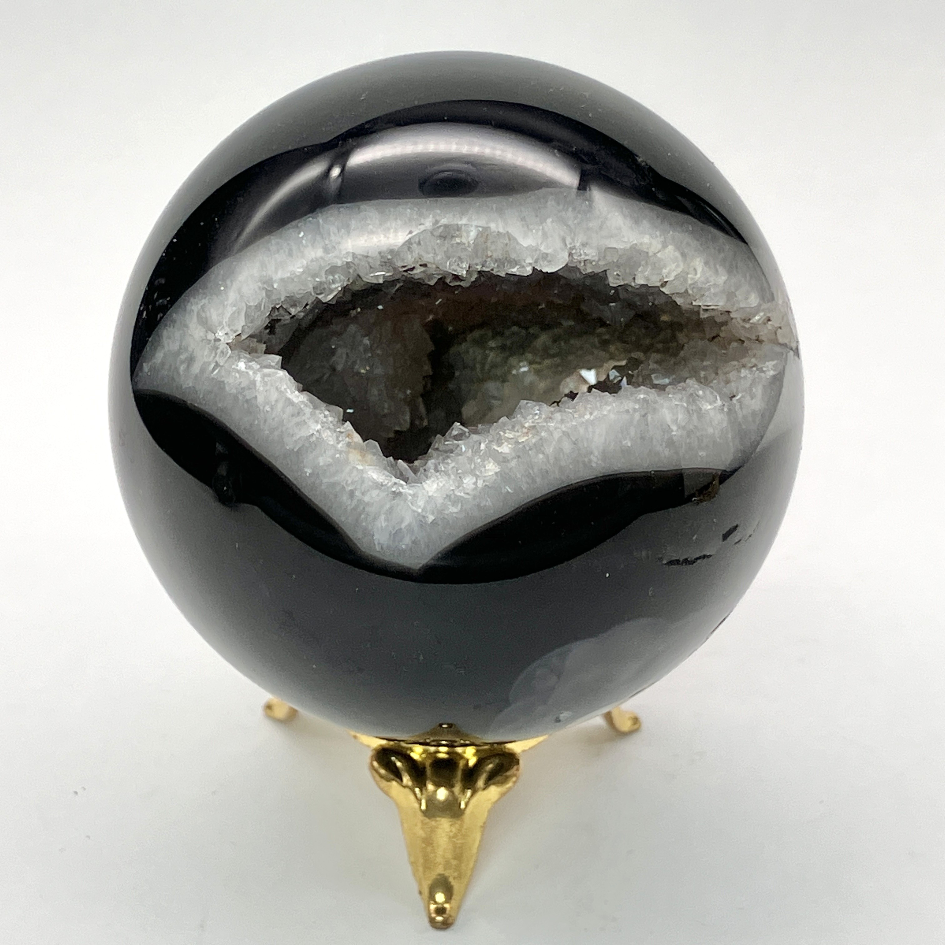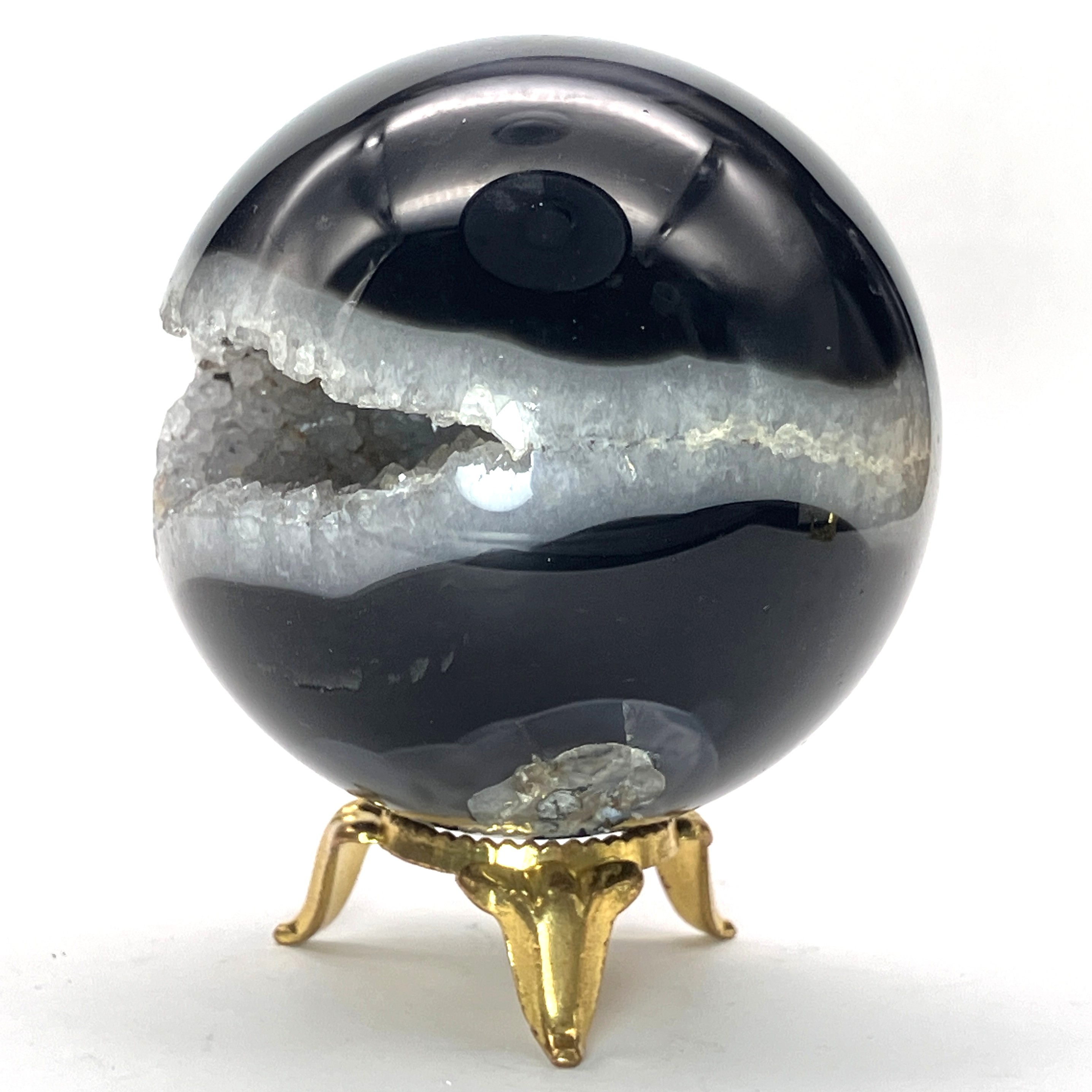 【置物/彫り物】ブラックメノウ丸玉 約250g No,5069